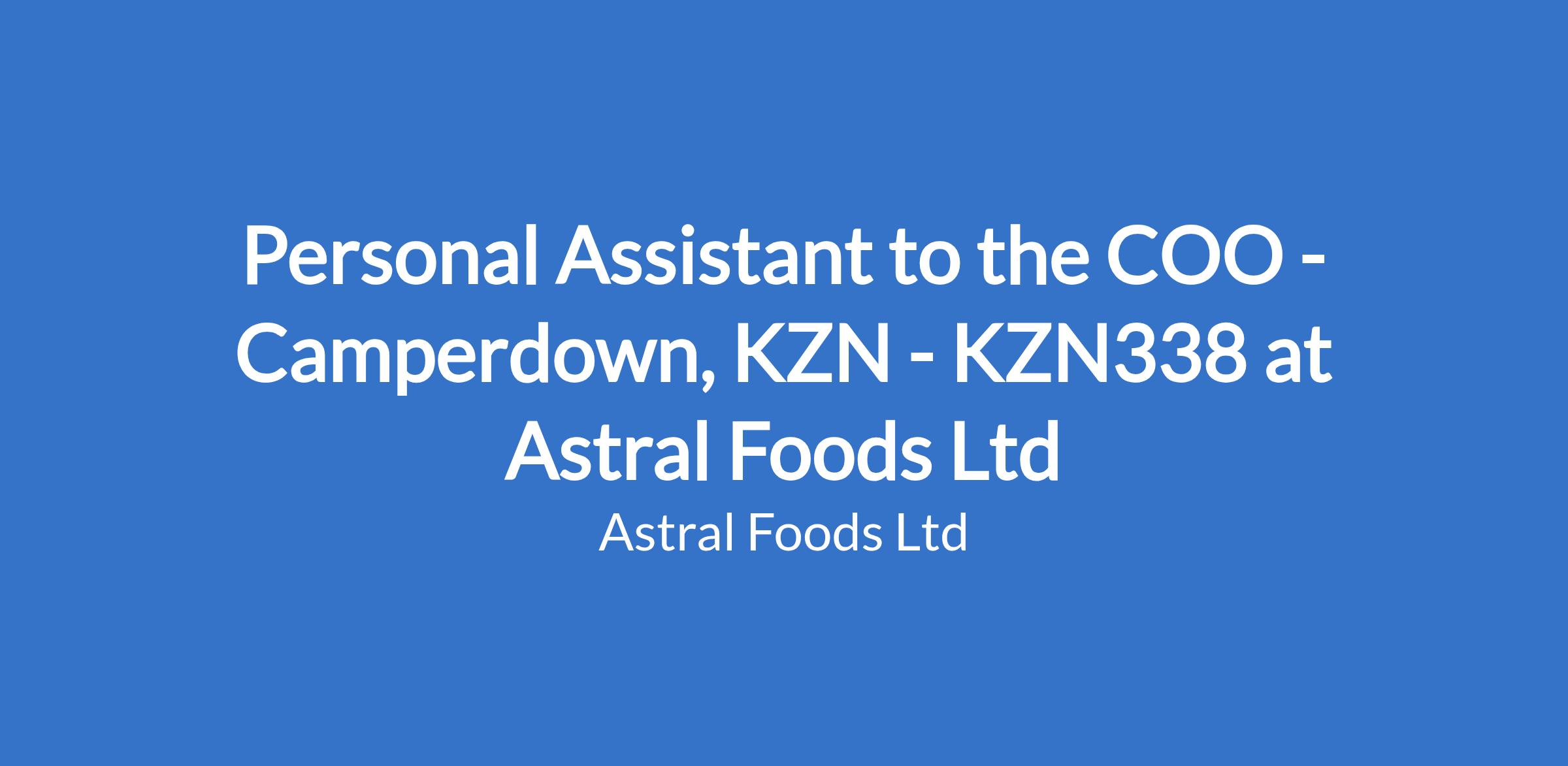 Personal Assistant to the COO - Camperdown, KZN - KZN338 at Astral Foods Ltd