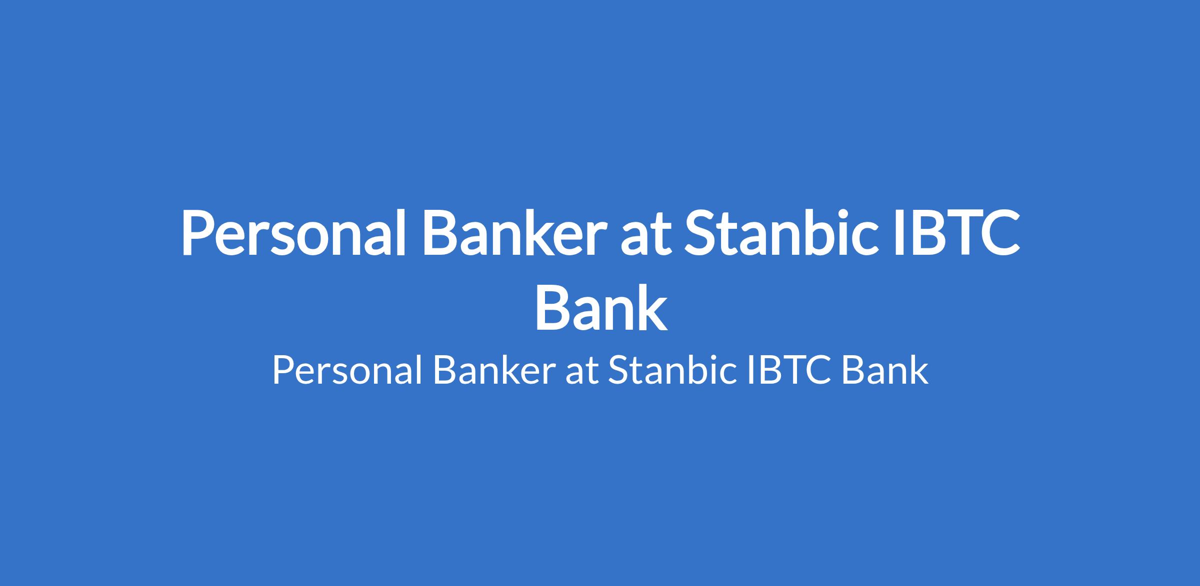 Stanbic IBTC Bank is recruiting to fill the position of: Personal Banker. The position is located in Asaba, Delta State. Interested candidates should possess a University Degree in any relevant field with at least 3 years experience in Personal and Private Banking.