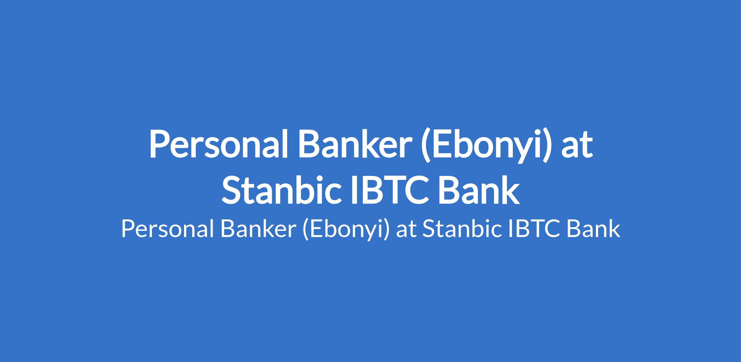 Stanbic IBTC Bank is recruiting to fill the position of: Personal Banker. The position is located in Abakaliki, Ebonyi State. Interested candidates should possess a minimum of University Degree with at least 3 years experience in Personal and Private Banking.
