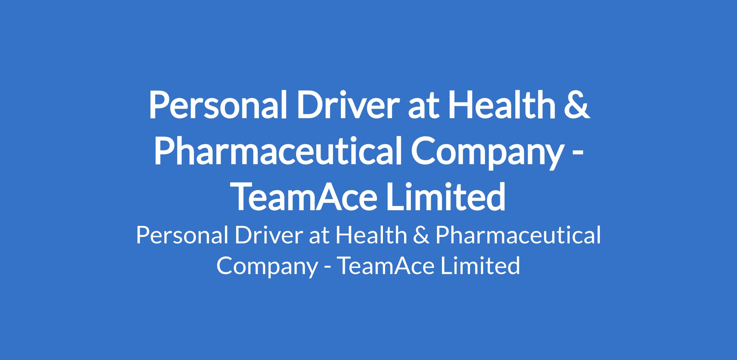 TeamAce Limited - Our client, a Health & Pharmaceutical company is recruiting to fill the position of: Personal Driver. The position is located in Ikeja, Lagos State. Interested candidates should possess relevant qualifications with 3 years driving experience. Candidates must reside around Ikeja, Ogba, or Ojota and have good knowledge of Lagos routes and navigation (map usage).