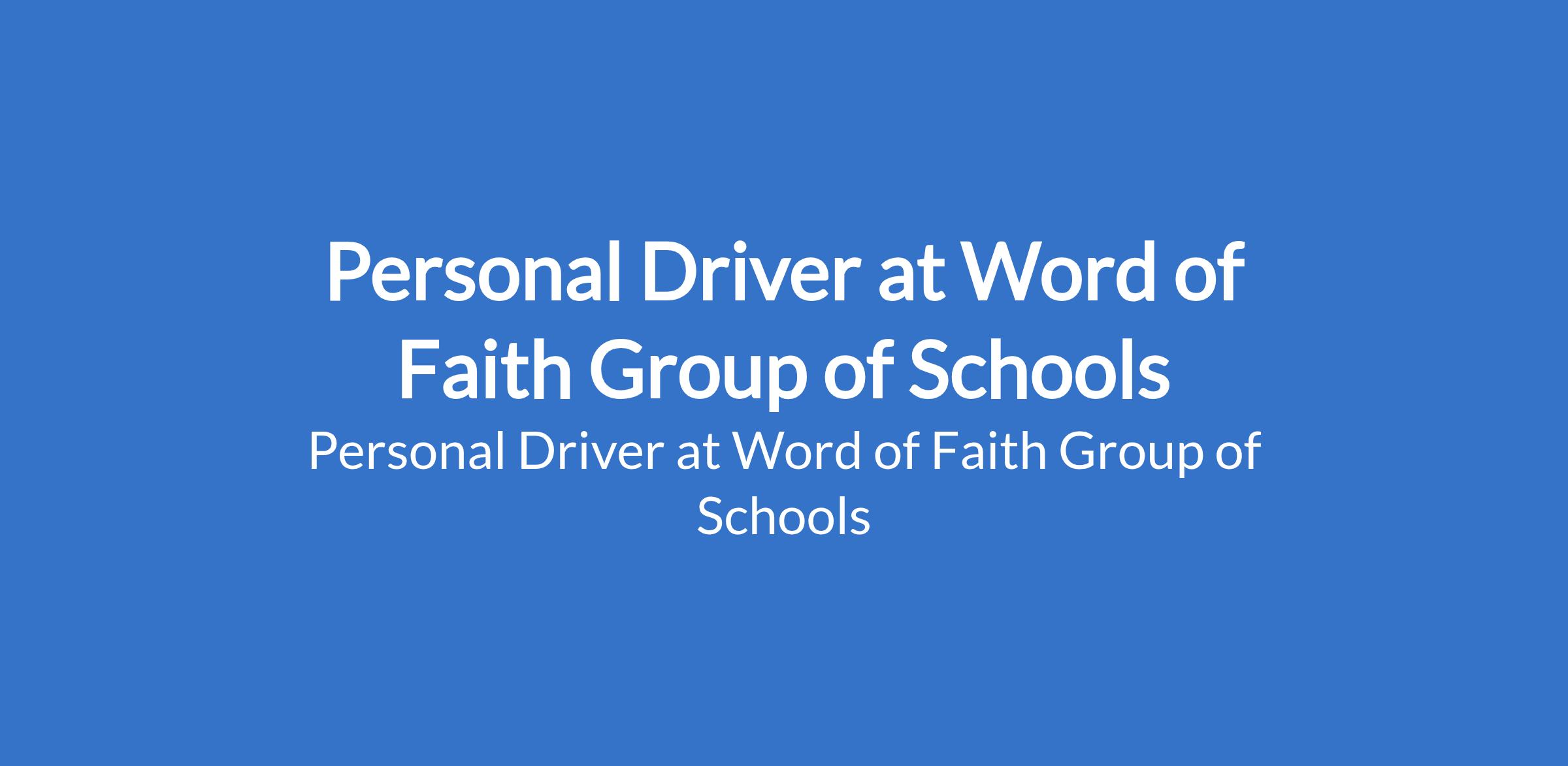 Word of Faith Group of Schools is recruiting to fill the position of: Personal Driver. The position is located in Abuja. Salary: N50,000 - N100,000 / Month. Interested candidates should possess relevant qualifications, a Valid drivers license with a minimum of 10 years driving experience.