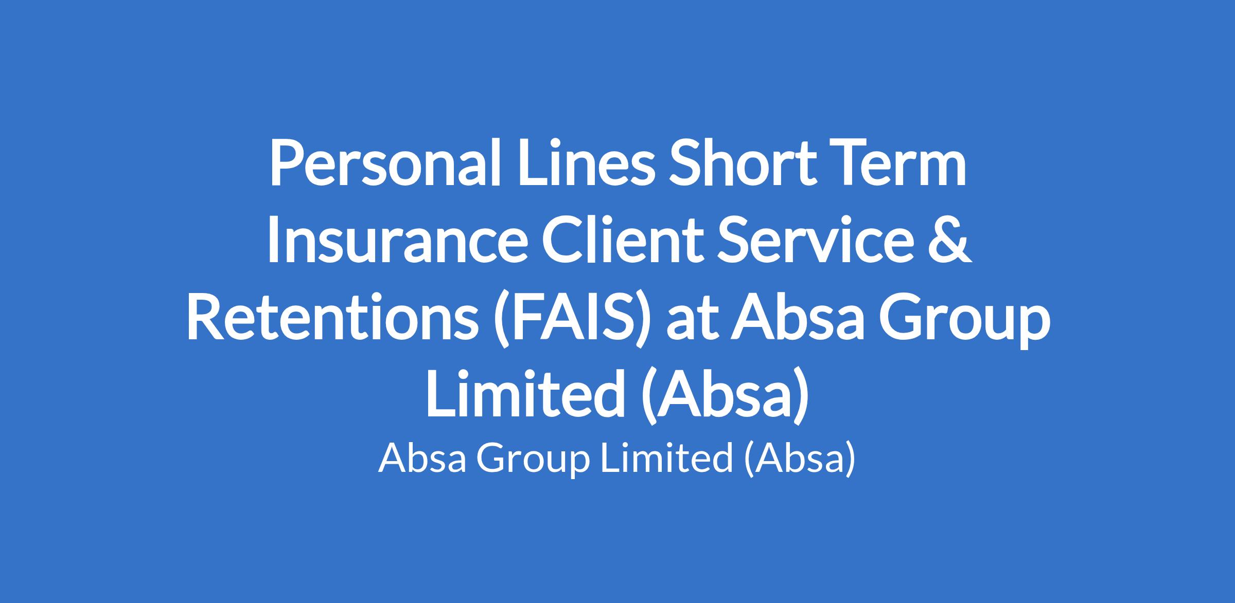 Personal Lines Short Term Insurance Client Service & Retentions (FAIS) at Absa Group Limited (Absa)