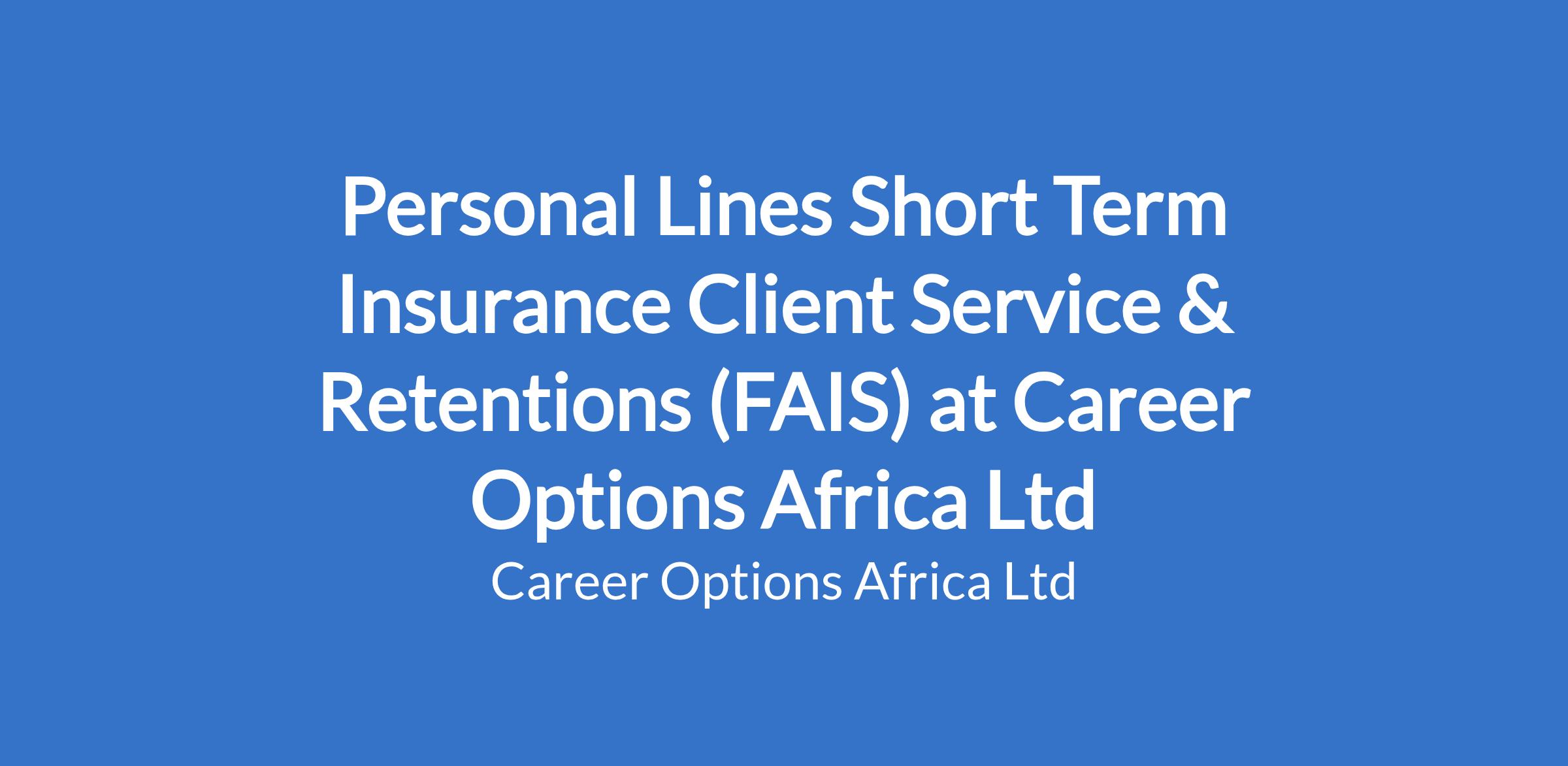 Personal Lines Short Term Insurance Client Service & Retentions (FAIS) at Career Options Africa Ltd