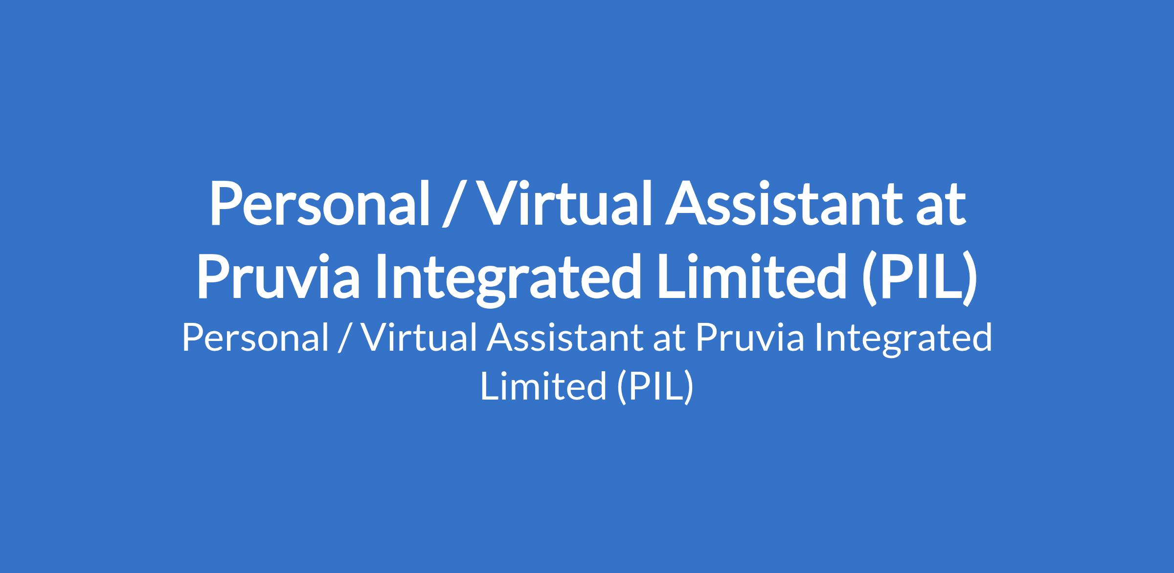 Pruvia Integrated Limited (PIL) is recruiting to fill the position of: Personal / Virtual Assistant. The position is located in Ikeja, Lagos State. Salary: N100,000 - N150,000 monthly. Interested candidates should possess an HND / Bachelor`s Degree with 1 - 3 years experience.