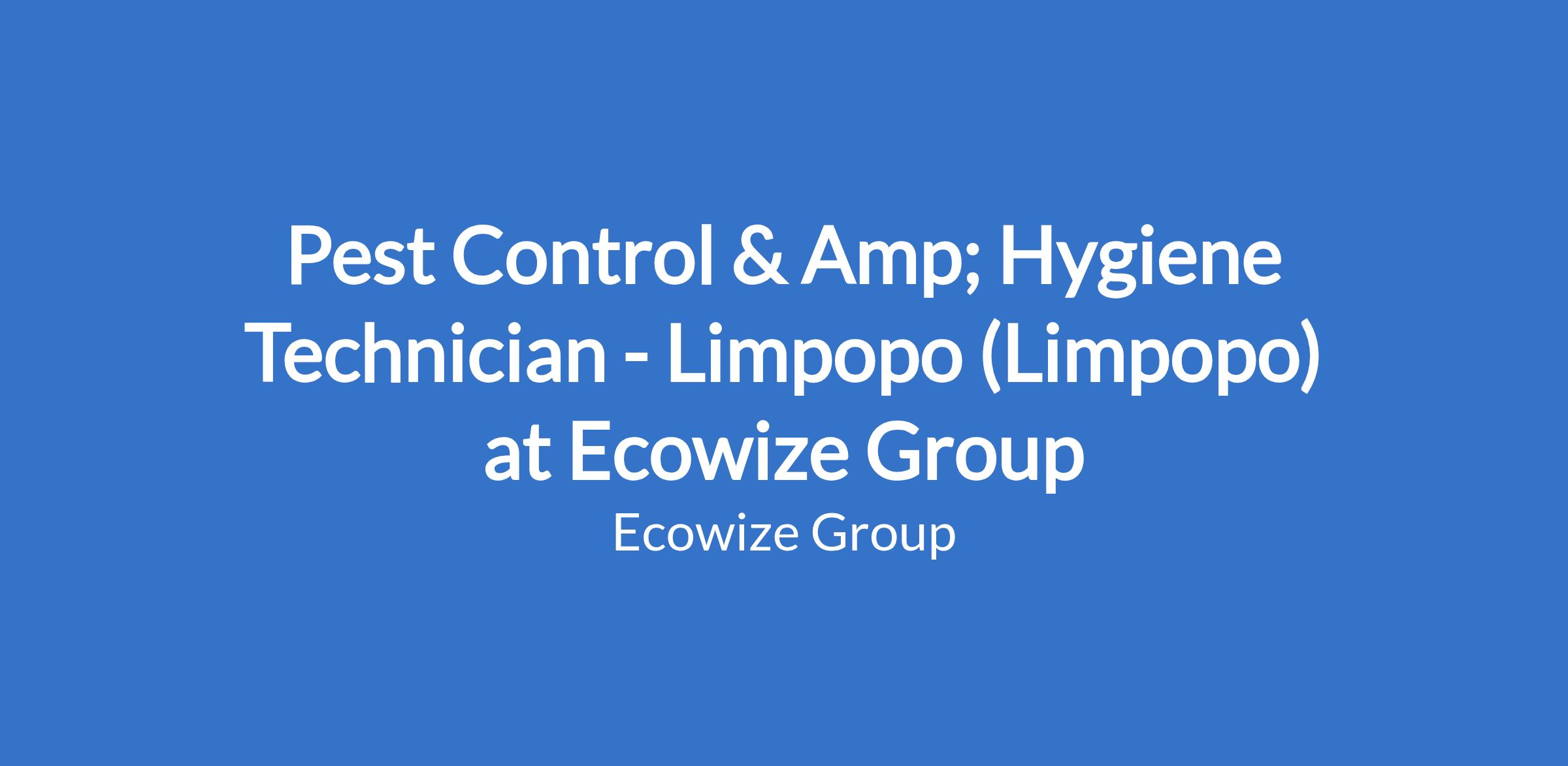 Pest Control & Amp; Hygiene Technician - Limpopo (Limpopo) at Ecowize Group