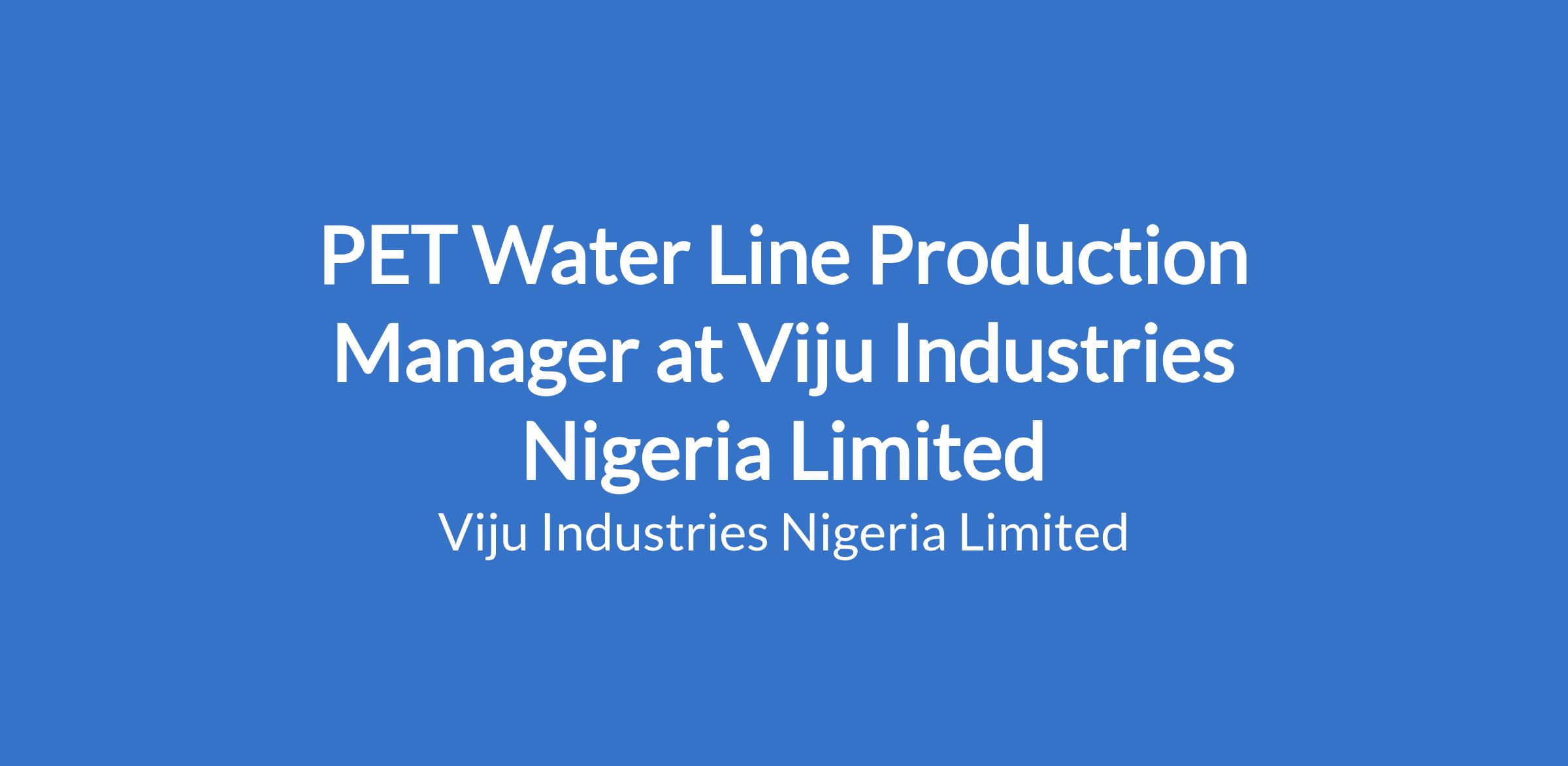 PET Water Line Production Manager at Viju Industries Nigeria Limited