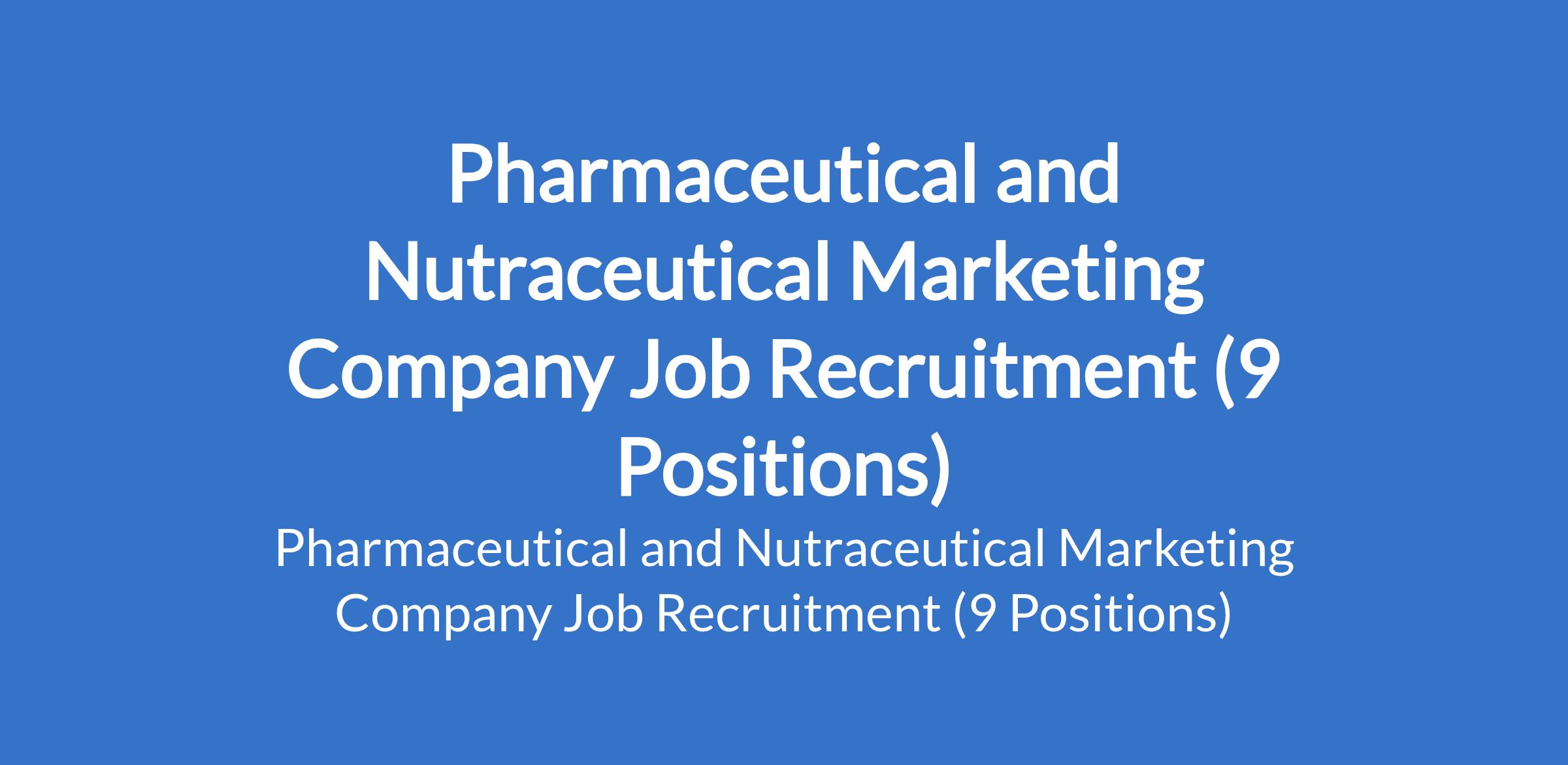 A Pharmaceutical and Nutraceutical Marketing Company is recruiting suitable candidates to fill the following positions in Lagos State: Marketing Sales Executive, Medical Sales Representative, Sales Manager, Brand Manager, Product Group Assistant, Regional Manager, Key Account Manager, National Sales Manager, and Event Manager.