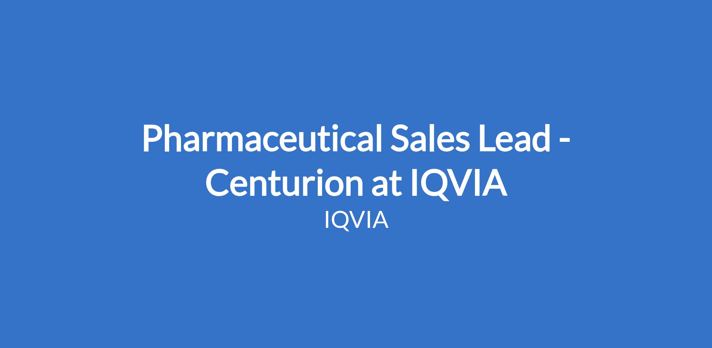 Pharmaceutical Sales Lead - Centurion at IQVIA