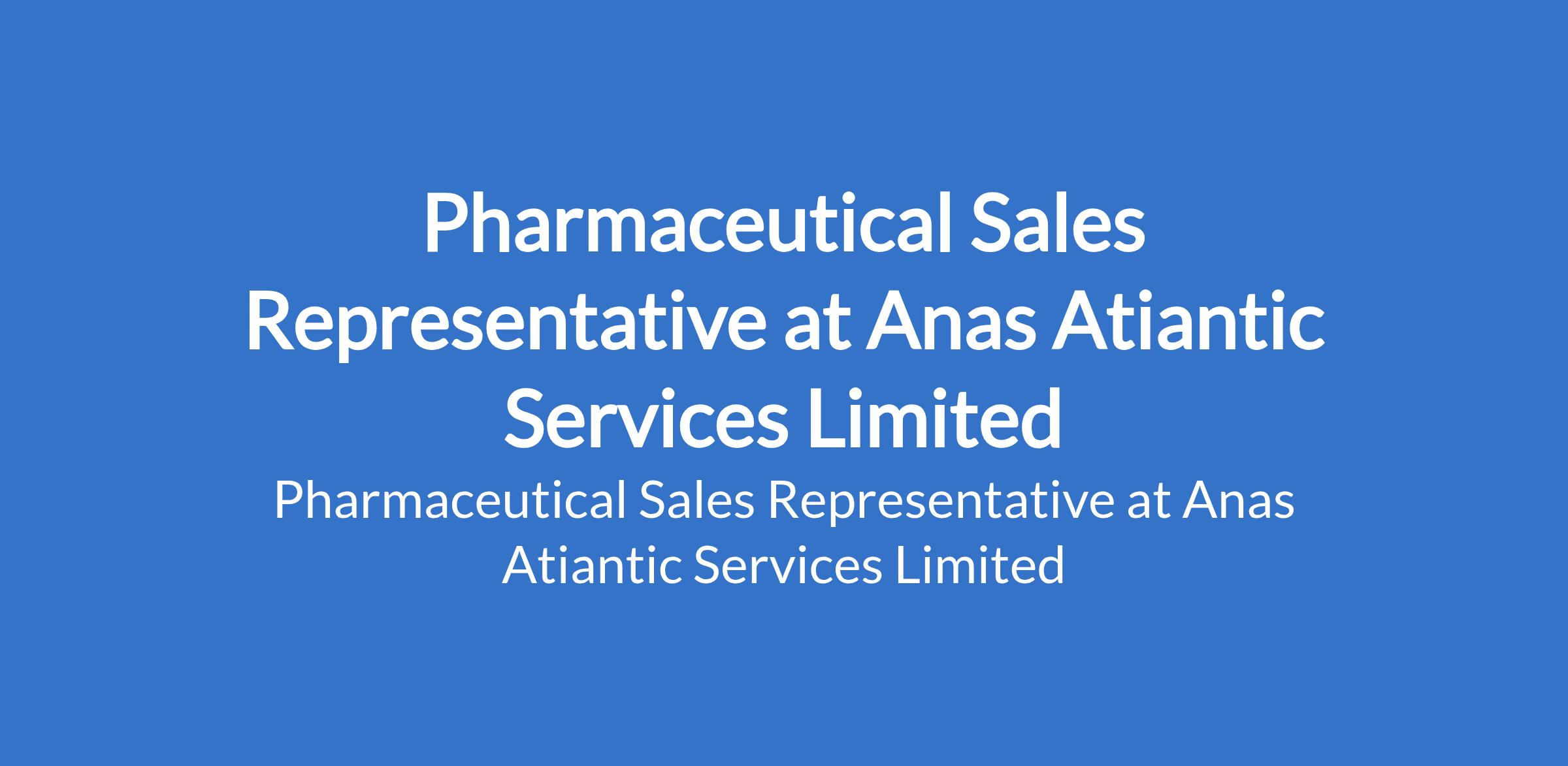 Pharmaceutical Sales Representative at Anas Atiantic Services Limited