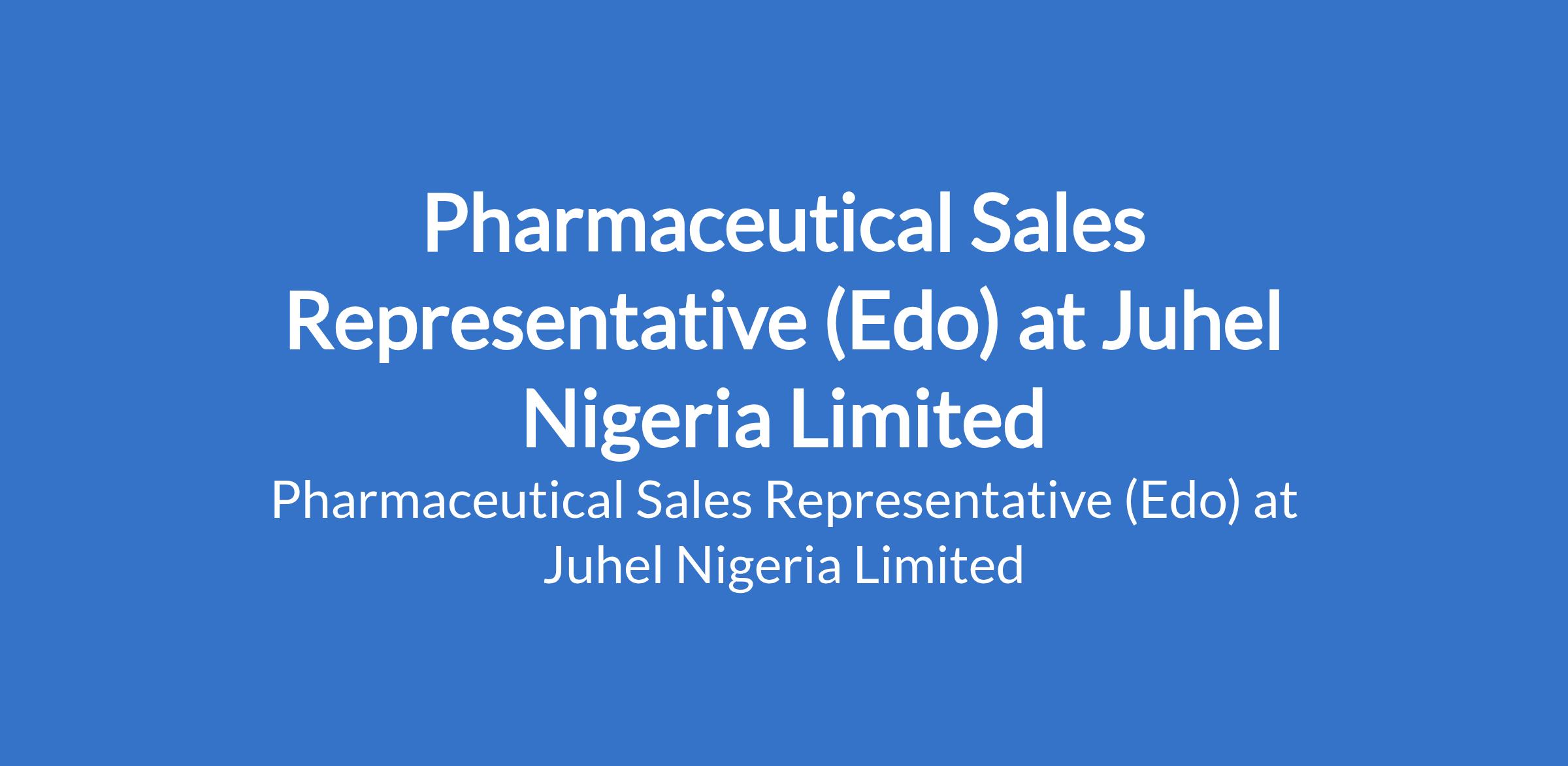 Juhel Nigeria Limited is recruiting to fill the position of: Pharmaceutical Sales Representative. The position is located in Edo State. Interested candidates should possess a BPharm, BSc / HND in Biological sciences, Sciences & Maths, Business Admin, Economics, Marketing.