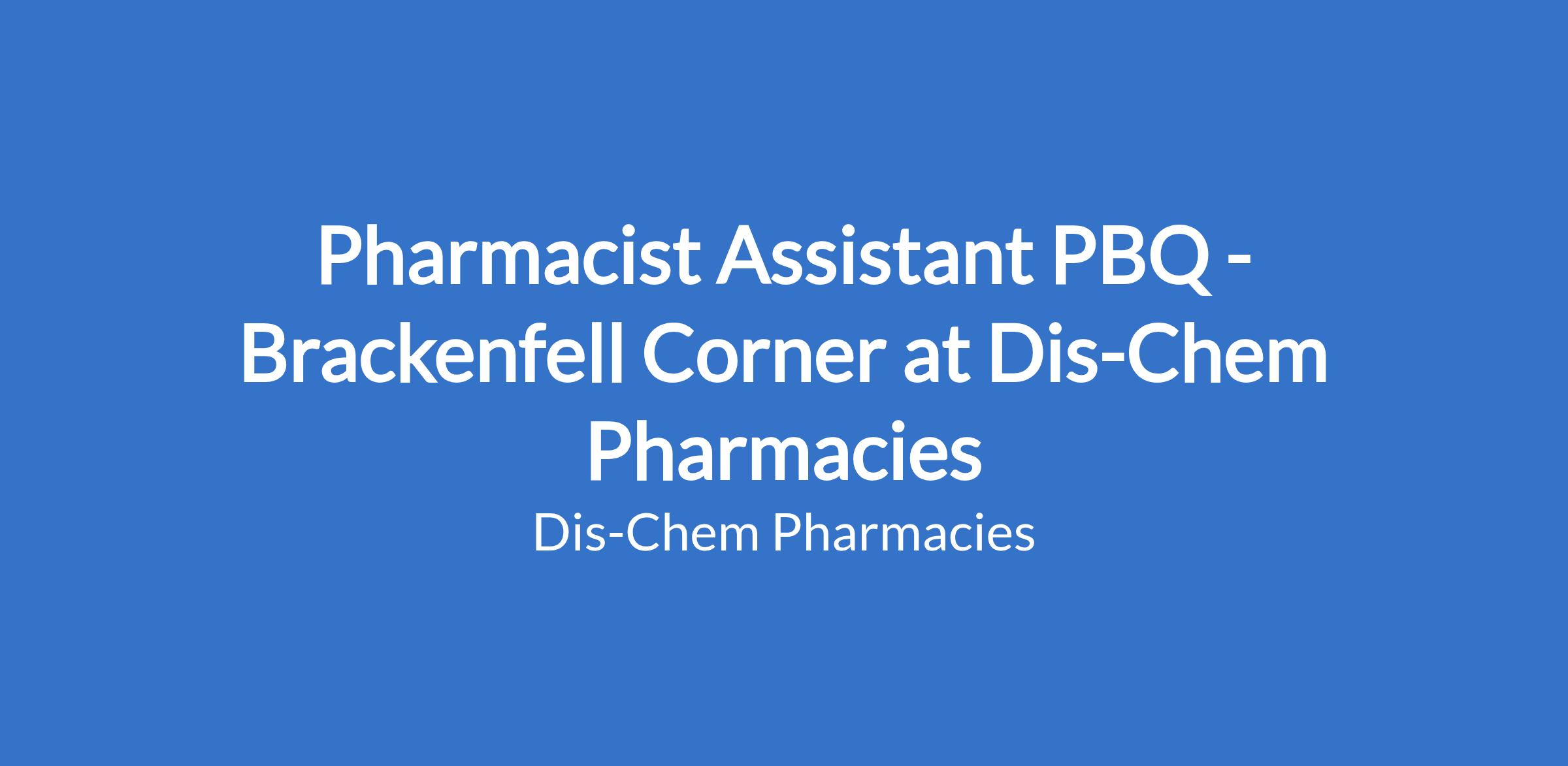 Dis-Chem Pharmacies require the services of a reputable Post Basic Qualify Pharmacist Assistant for their Brackenfell Corner store. Your portfolio will cover the provision of pharmaceutical care by taking responsibility for the patient's medicine-related needs and being accountable for meeting these needs.