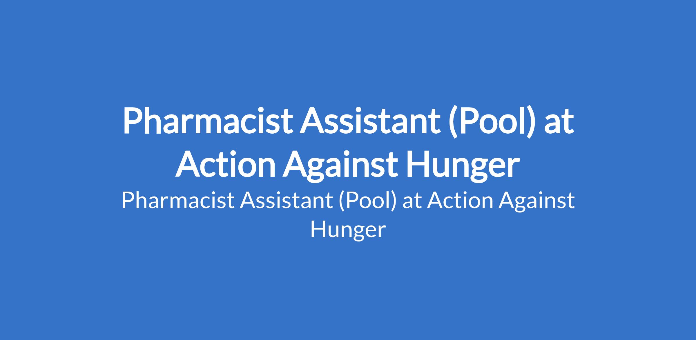 Action Against Hunger is recruiting to fill the position of: Pharmacist Assistant (Pool). The position is located in Maiduguri, Borno State. Interested candidates should possess Bachelors Degree in Pharmacy with a minimum of 2 years experience in stock management.