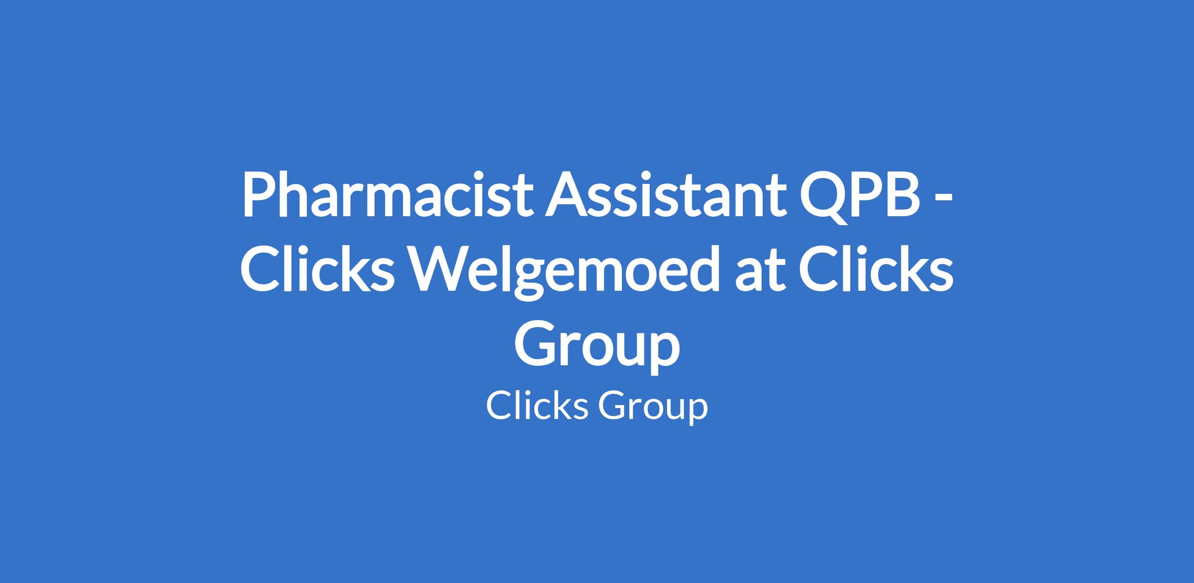 Pharmacist Assistant QPB - Clicks Welgemoed at Clicks Group