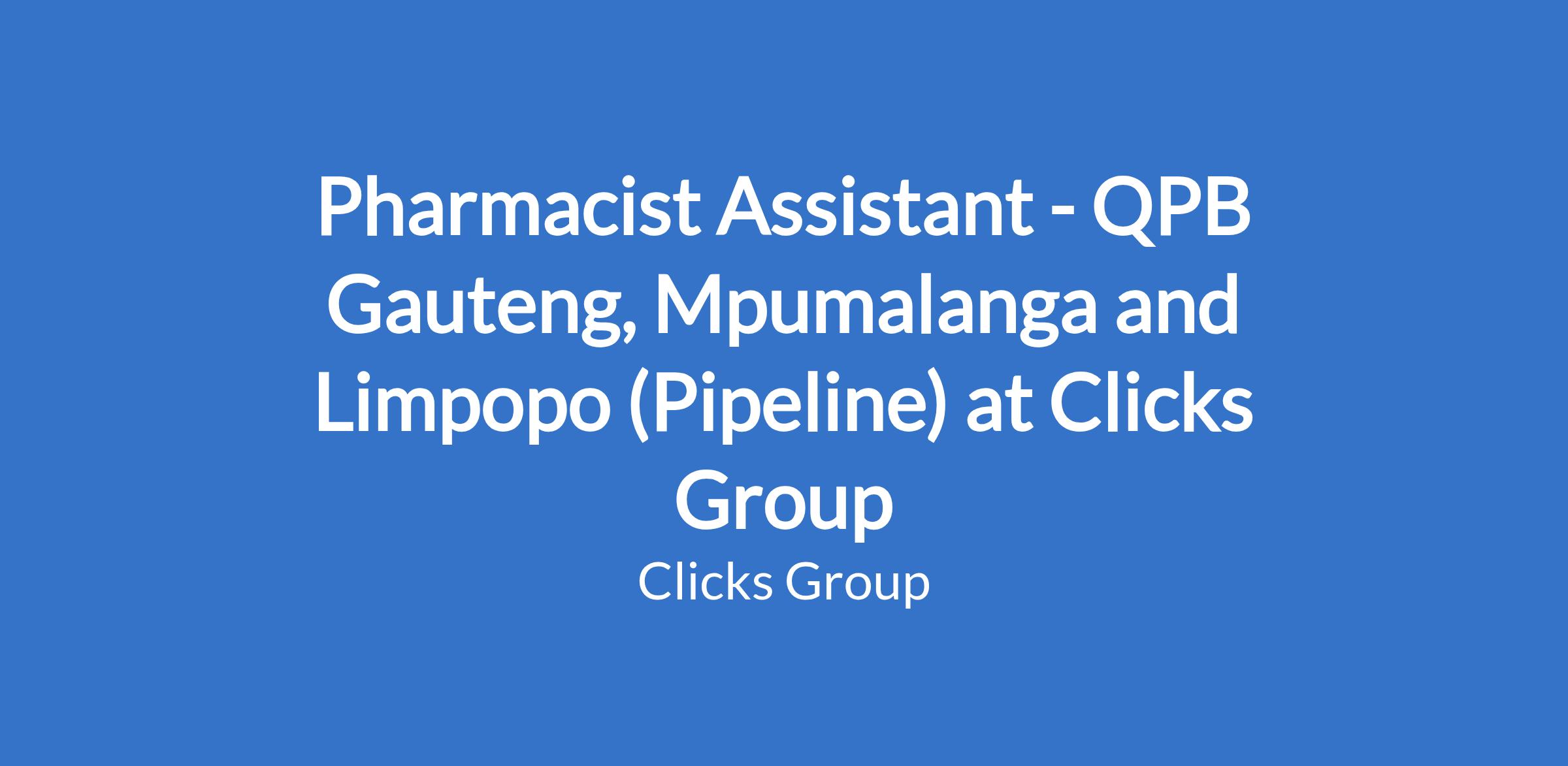 Pharmacist Assistant - QPB Gauteng, Mpumalanga and Limpopo (Pipeline) at Clicks Group