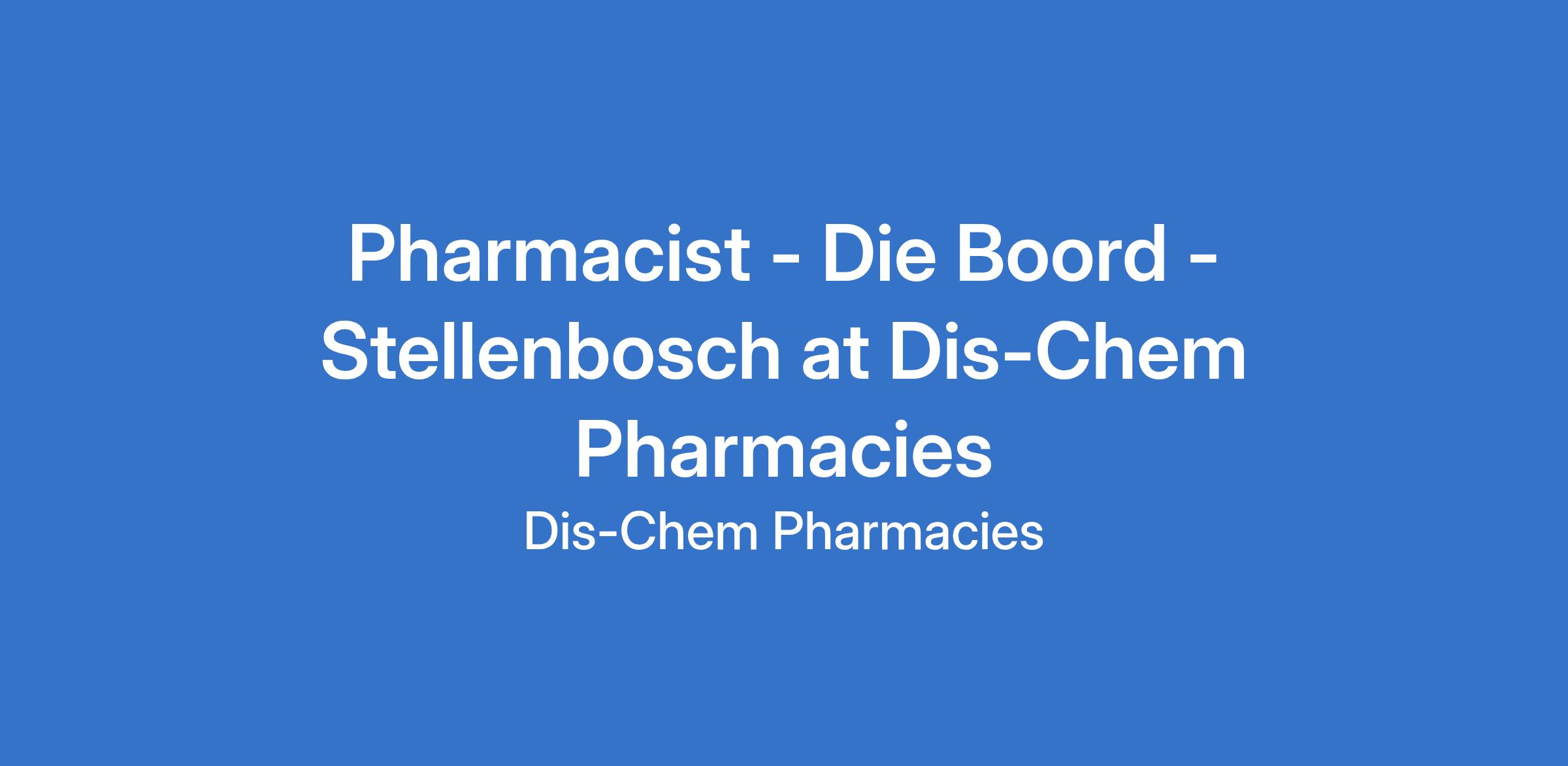 Dis-Chem Pharmacies require the services of a reputable Pharmacist for their Die Boord store. Your portfolio will cover the provision of pharmaceutical care by taking responsibility for patients' medicine-related needs, and being accountable for meeting these needs.