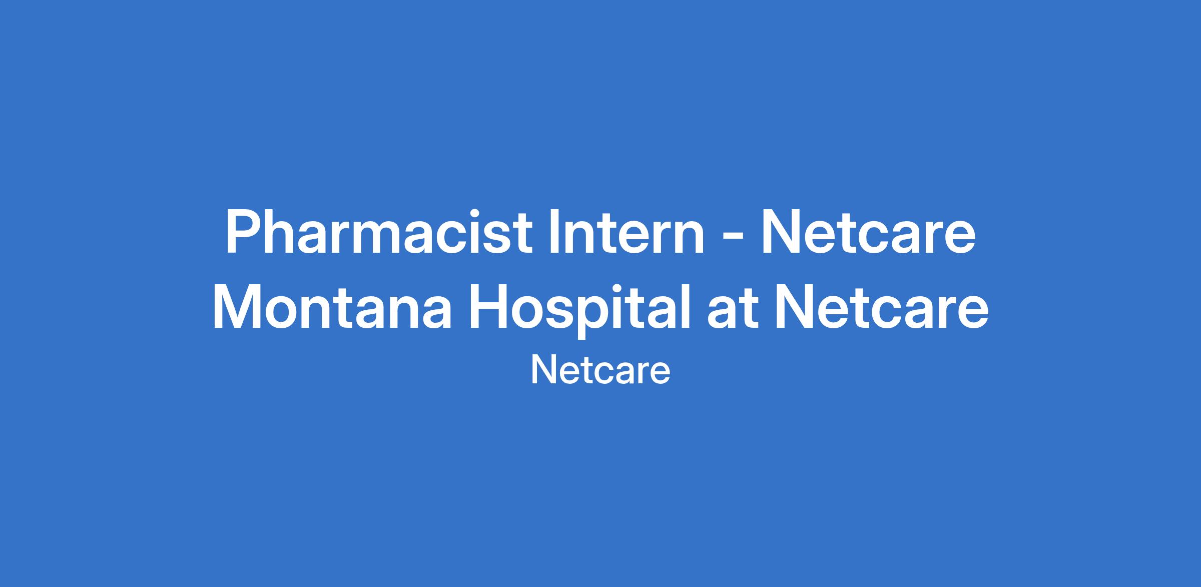 Pharmacist Intern - Netcare Montana Hospital at Netcare