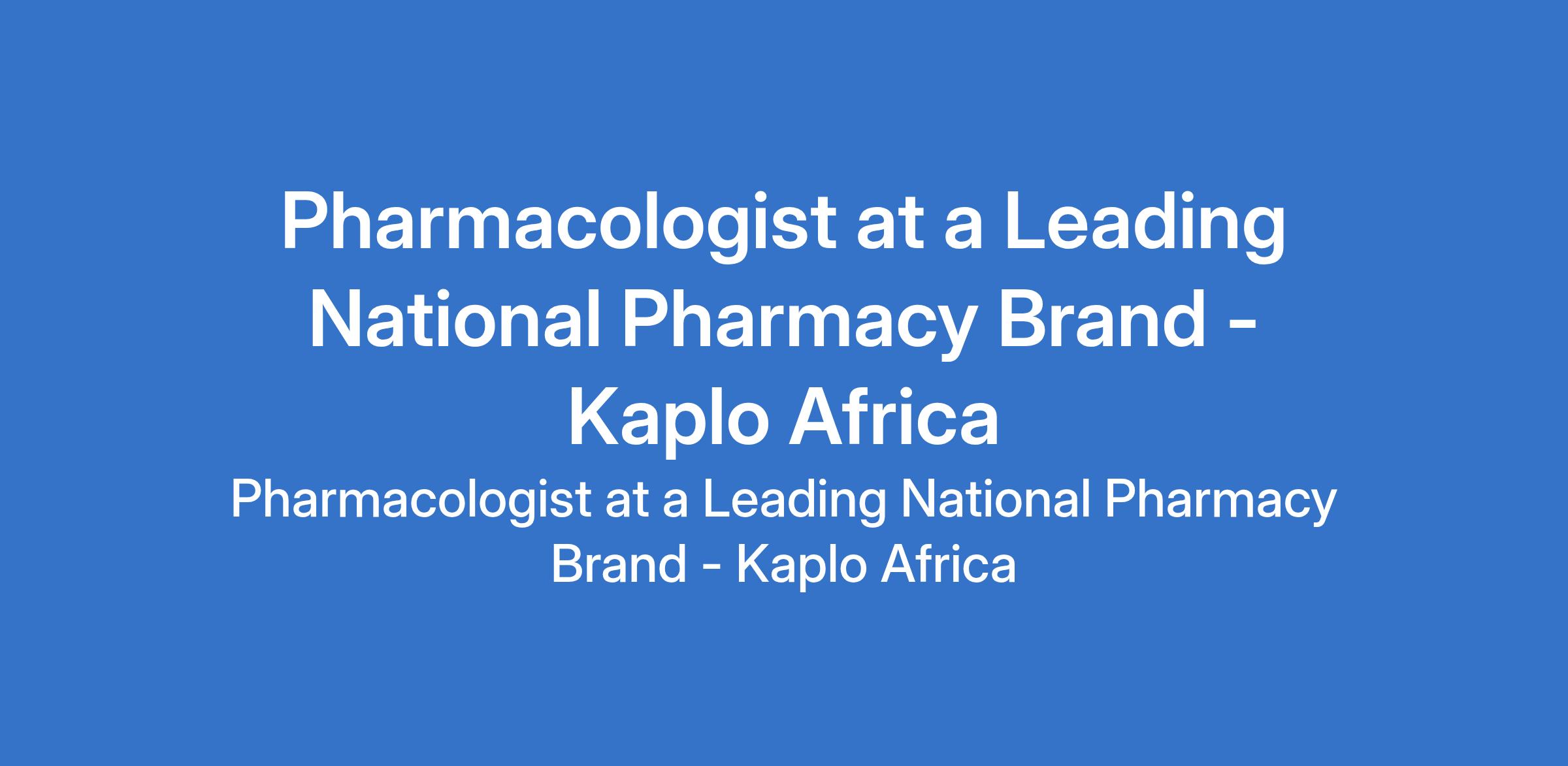 Pharmacologist at a Leading National Pharmacy Brand - Kaplo Africa