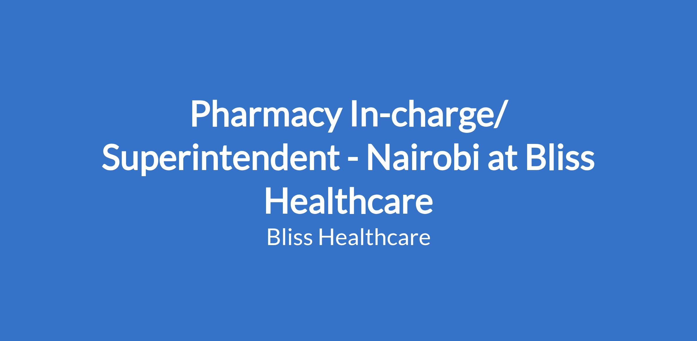 Pharmacy In-charge/ Superintendent - Nairobi at Bliss Healthcare