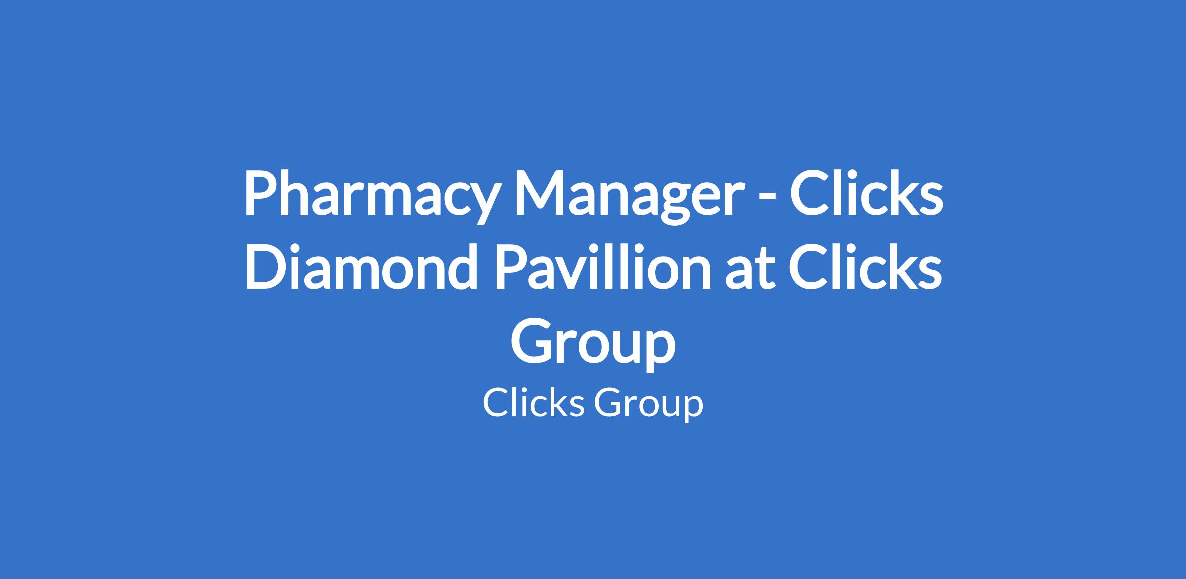 Pharmacy Manager - Clicks Diamond Pavillion at Clicks Group