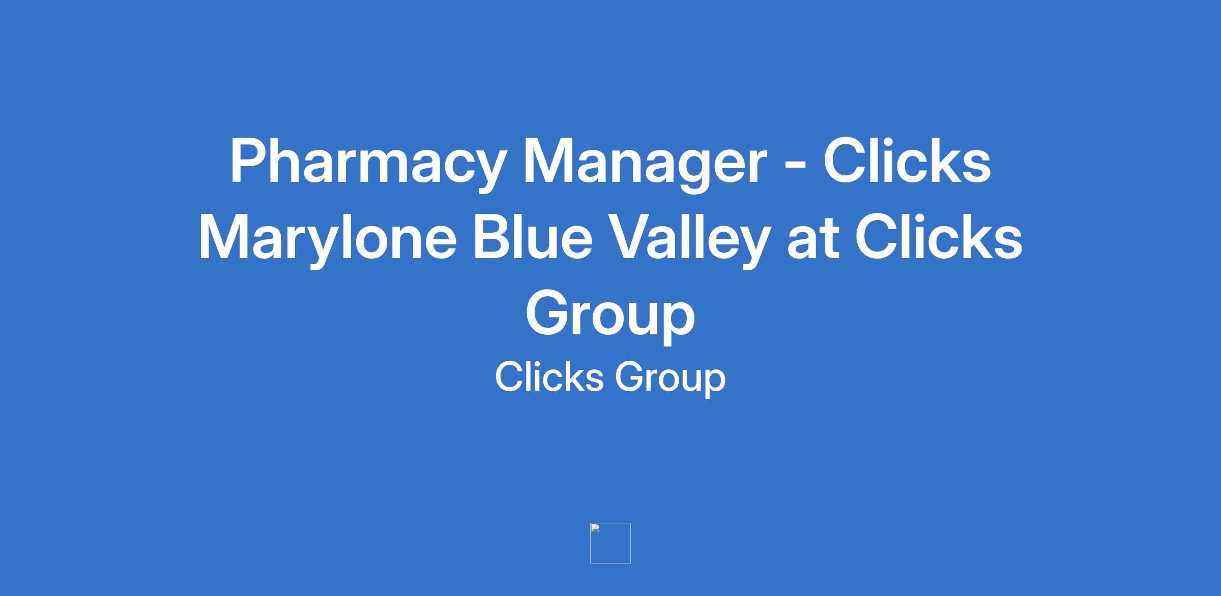 Pharmacy Manager - Clicks Marylone Blue Valley at Clicks Group