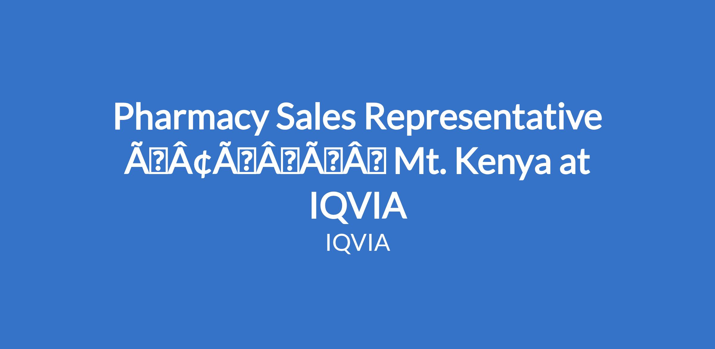 Pharmacy Sales Representative âÃÂàMt. Kenya at IQVIA