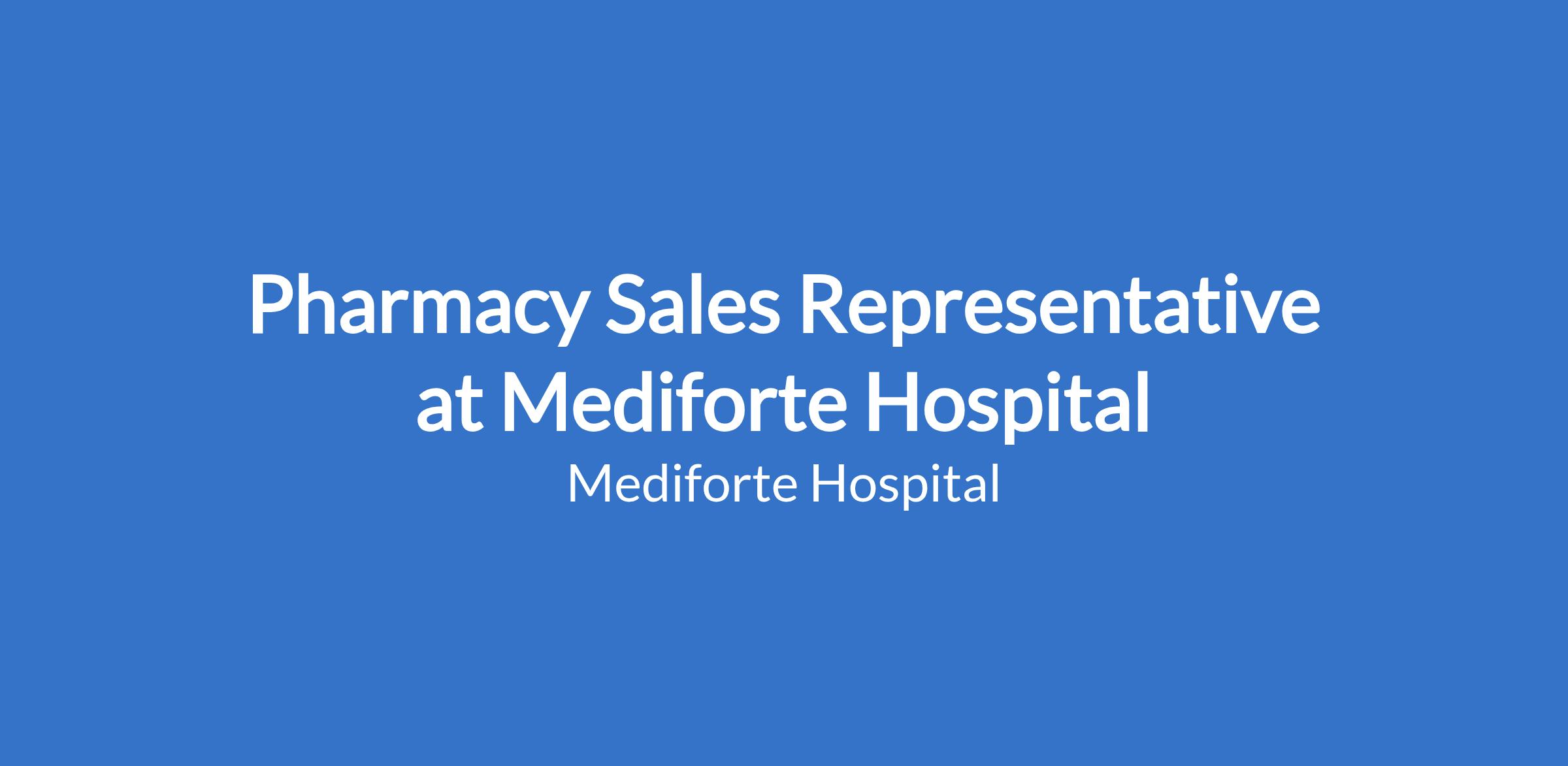 Proven sales experience in the pharmaceutical industry.