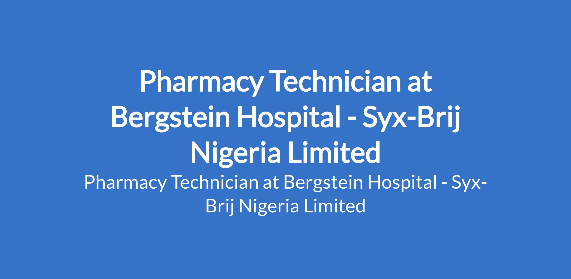 Syx-Brij Nigeria Limited - Our client, Bergstein Hospital is recruiting to fill the position of: Pharmacy Technician. The position is located in Ikorodu, Lagos State. Salary: N120,000 - N160,000 per month. Interested candidates should possess a Diploma or Certificate in Pharmacy Technician program or related fields, Valid practicing license (where applicable) with a minimum of 2 years relevant experience is an advantage.