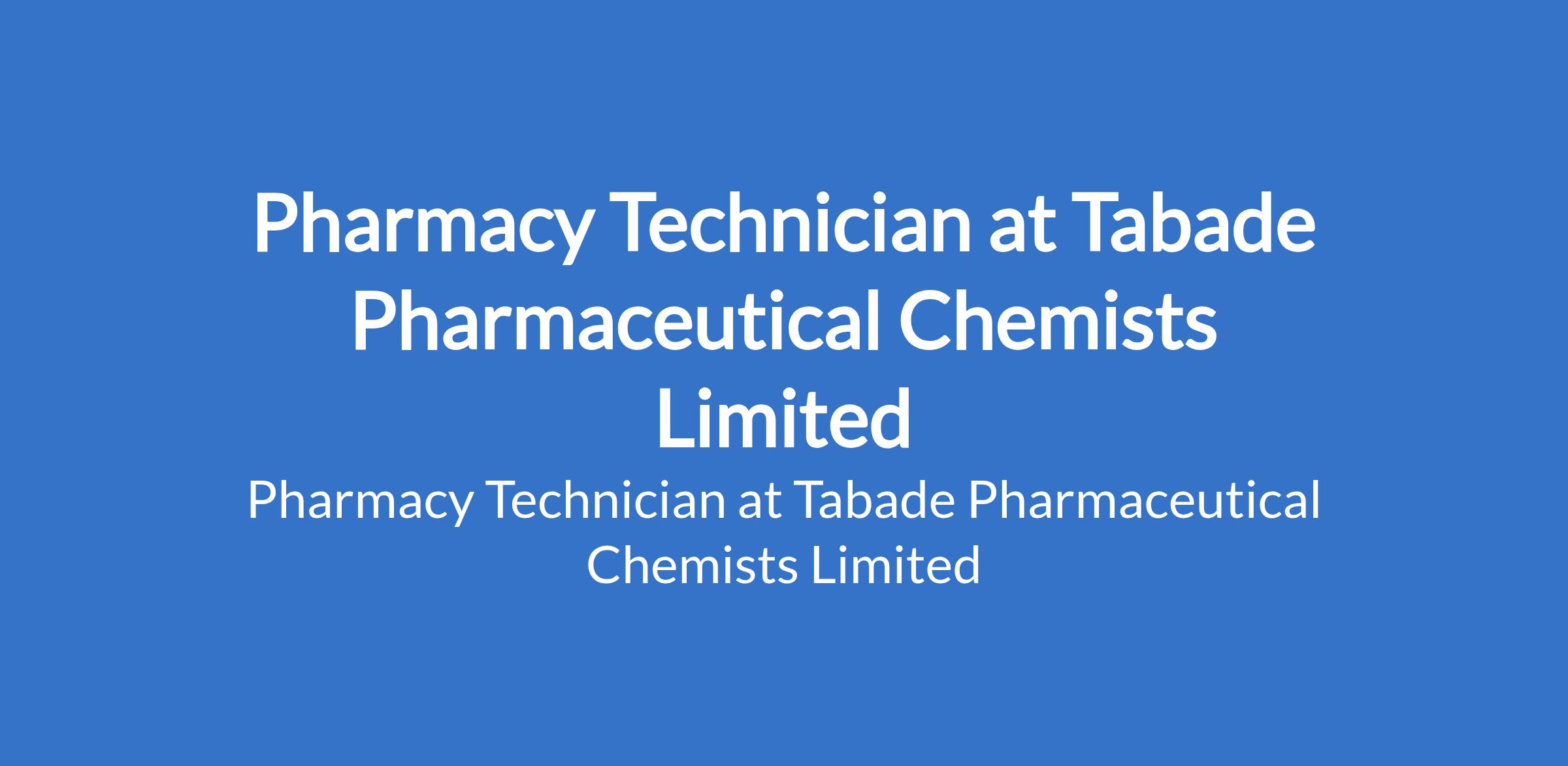 Tabade Pharmaceutical Chemists Limited is recruiting to fill the position of: Pharmacy Technician. The position is located in Lagos State. Interested candidates should possess relevant qualifications with experience and must reside within and around Yaba, Ebute Metta, Shomolu, Bariga and Akoka (Akoka and Bariga preferred).