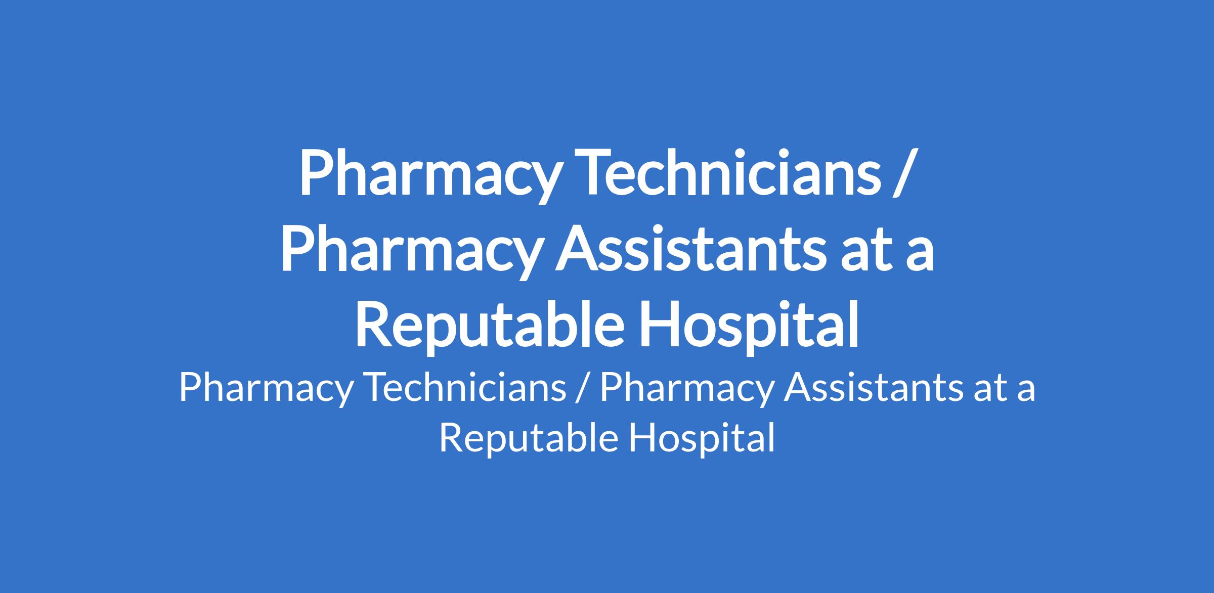 Pharmacy Technicians / Pharmacy Assistants at a Reputable Hospital