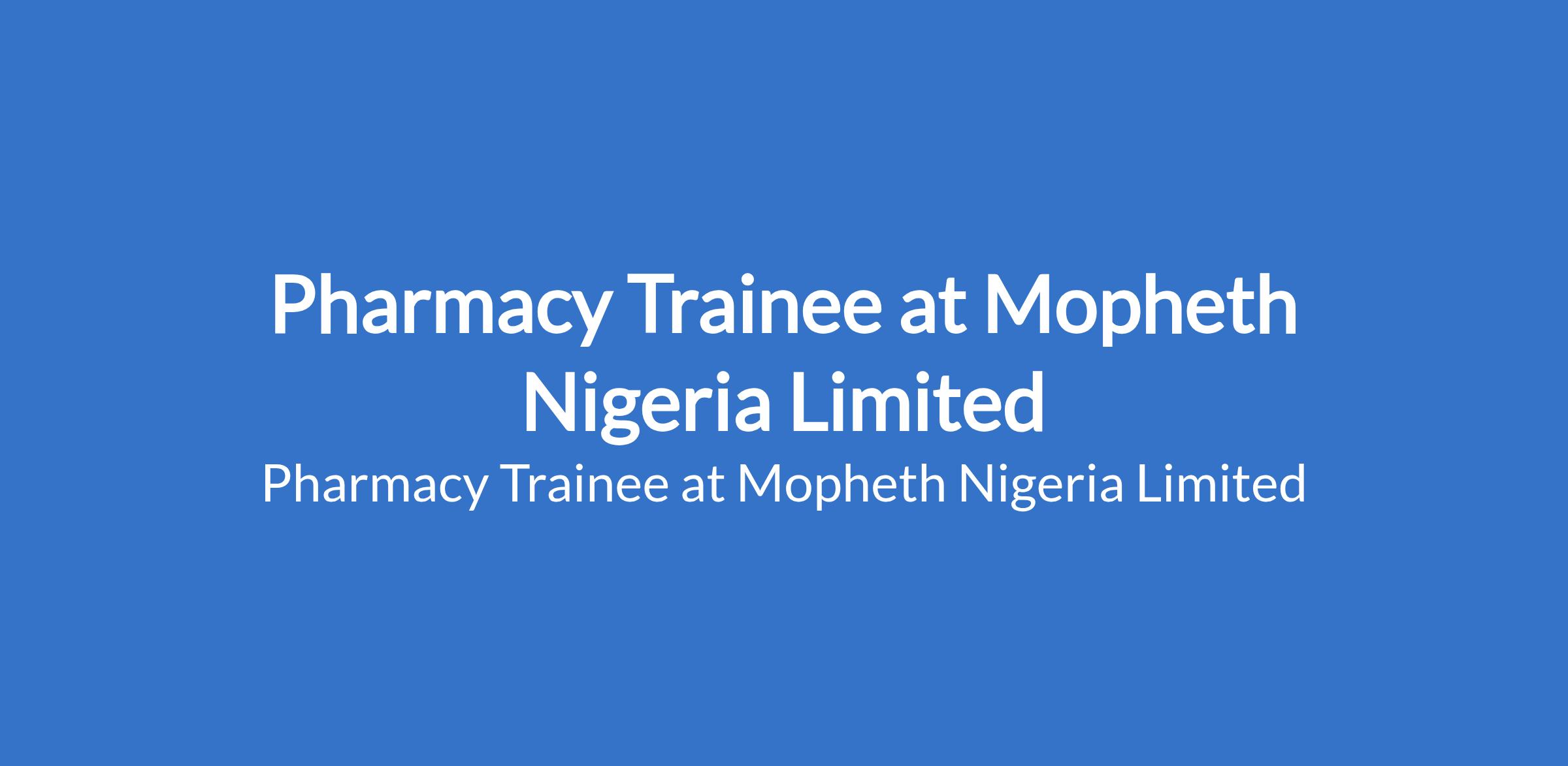 Mopheth Nigeria Limited is recruiting to fill the position of: Pharmacy Trainee. The position is located in Lagos State. Interested candidates should possess a Degree or Diploma in a science-related or health-related field with experience.