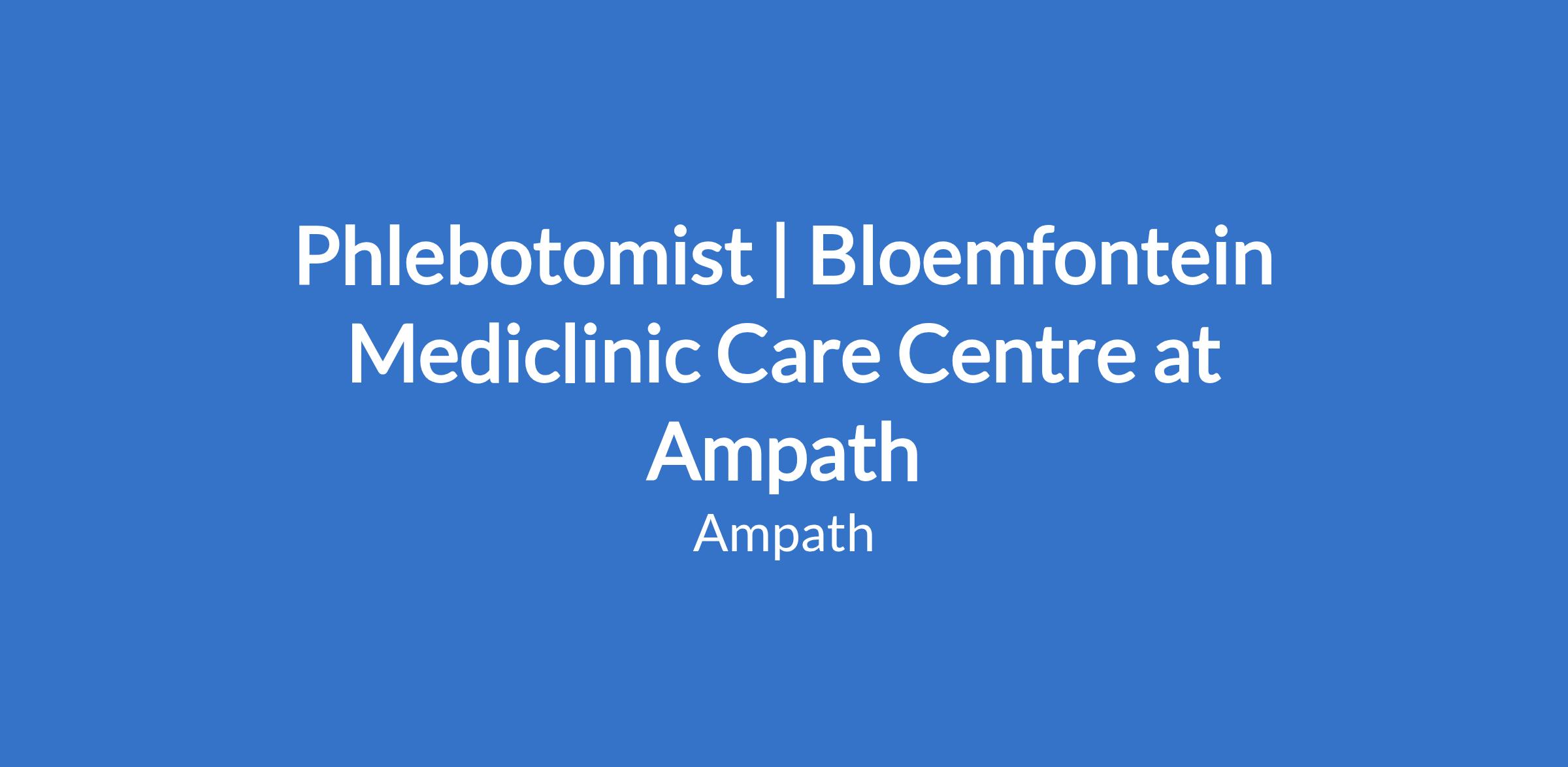 Phlebotomist | Bloemfontein Mediclinic Care Centre at Ampath