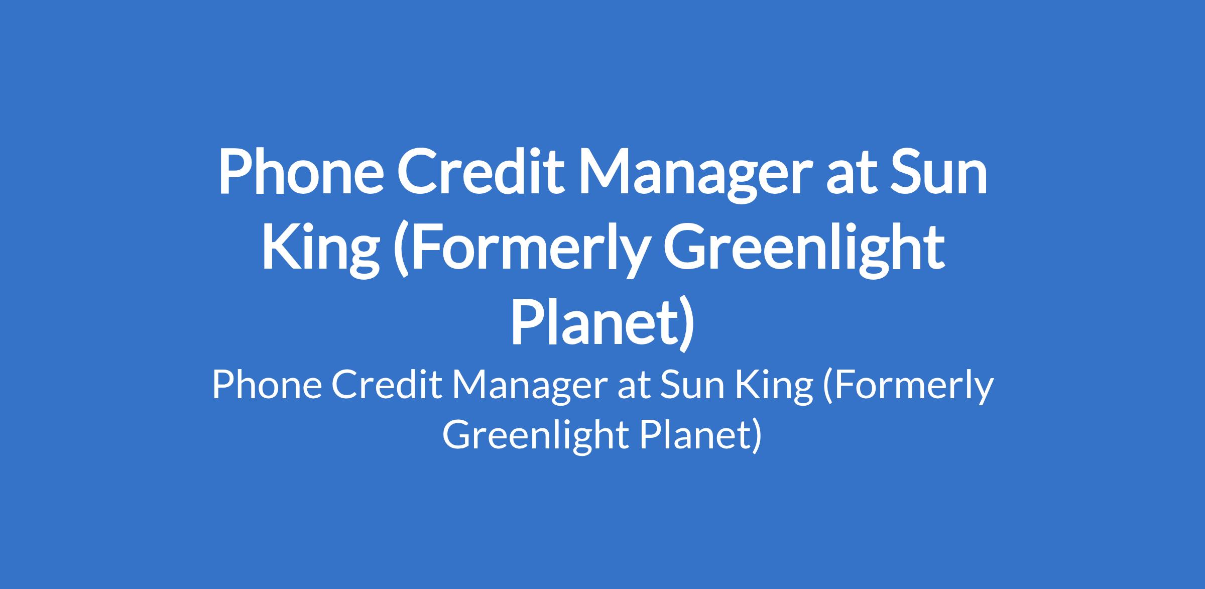 Sun King (Formerly Greenlight Planet) is recruiting to fill the position of: Phone Credit Manager. The position is located in Lagos State. Interested candidates possess a Bachelors Degree or Higher National Diploma in Finance, Risk Management or a related business field with over 8 years related experience preferably in the Audit/Risk/Credit department with at least 3 years in a supervisory role.