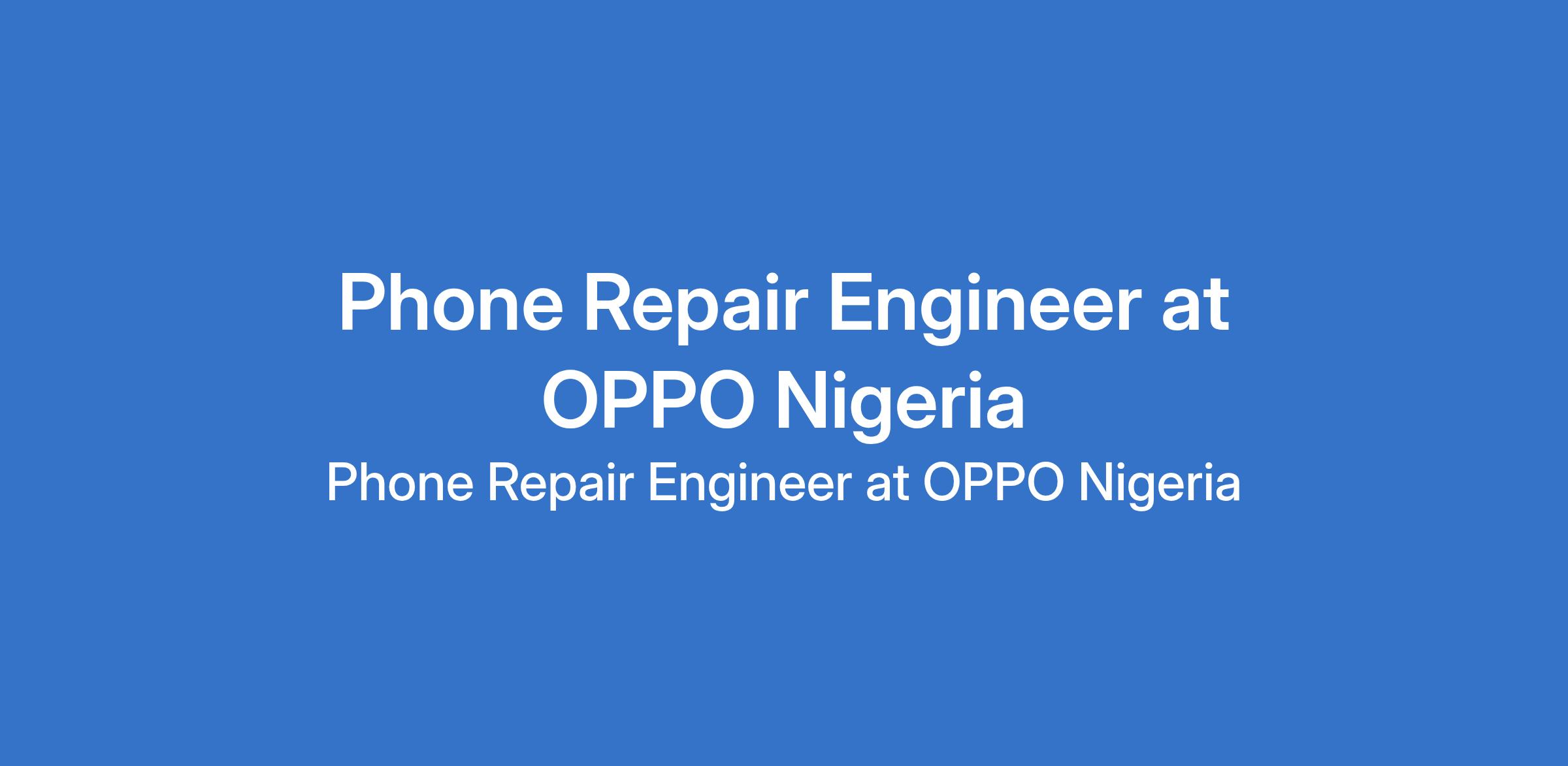 OPPO Nigeria is recruiting to fill the position of: Phone Repair Engineer. The position is located in Lagos State. Salary: N100,000 - N130,000 per month. The ideal candidate must be technically sound, customer-focused, and committed to delivering quality repairs. Interested candidates should possess a minimum of National Diploma (ND) with at least 3 years relevant work experience.
