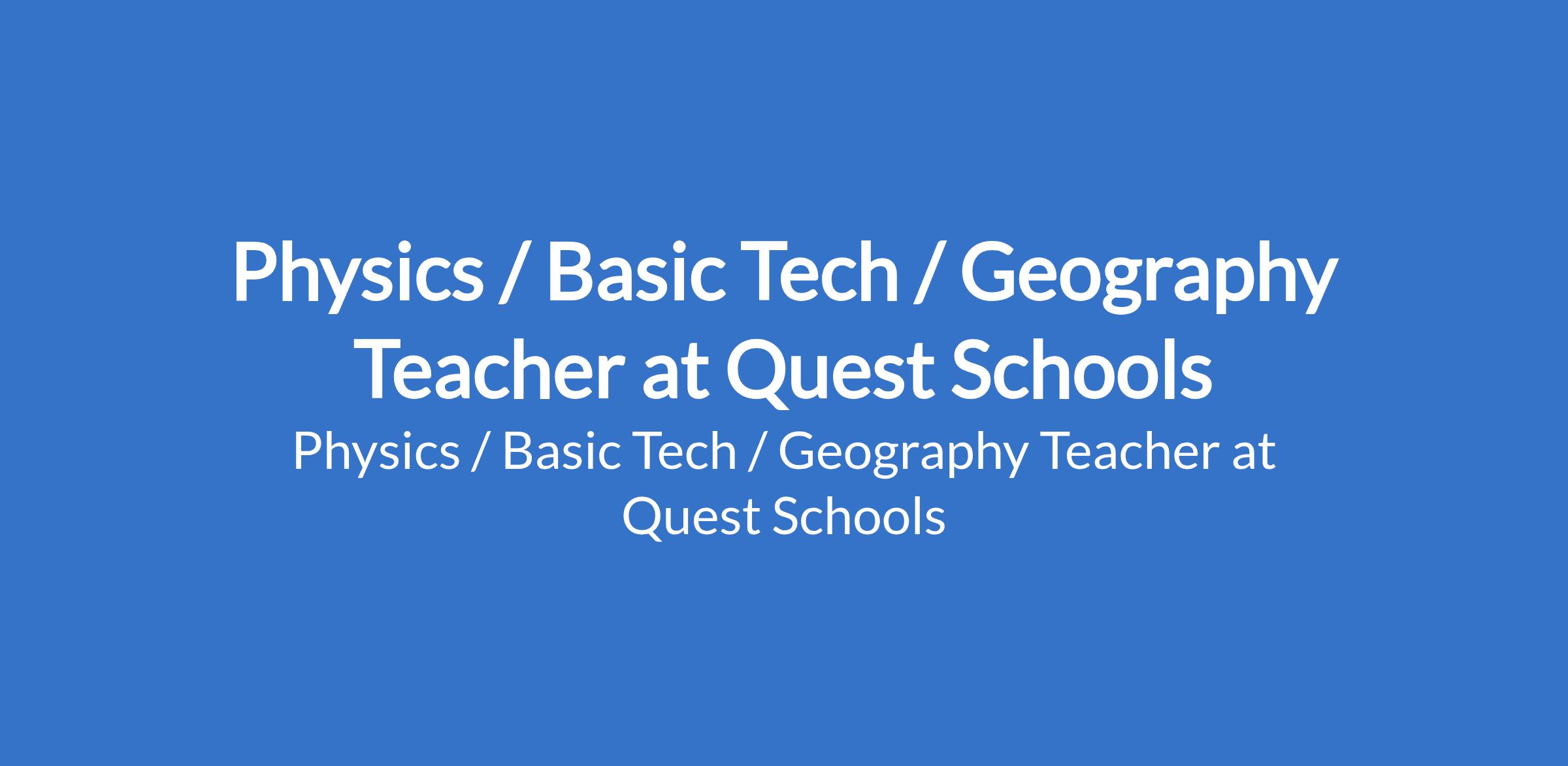 Quest Schools is recruiting to fill the position of: Physics / Basic Tech / Geography Teacher. The position is located in Osengere, Ibadan - Oyo State. Interested candidates should possess a minimum of a B.Sc., B.Ed., or B.Tech in Physics, Geography, Engineering, Education, or related field; TRCN certification is an added advantage with 1-2 years of teaching experience in a secondary school.