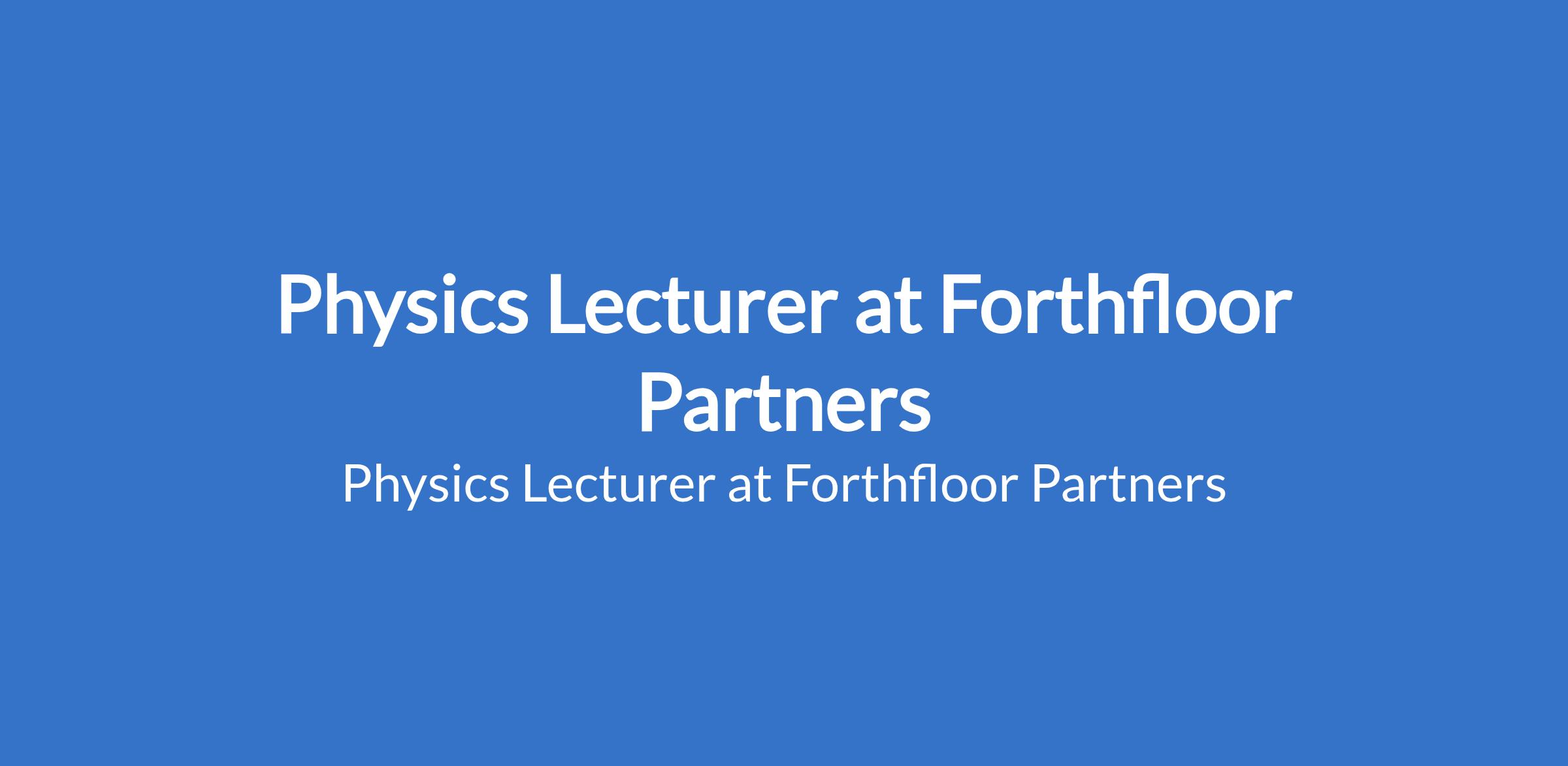 Forthfloor Partners is recruiting to fill the position of: Physics Lecturer. The position is located in Apo, Abuja (FCT). Interested candidates should posses an MSc. or PhD in Physics or related field; Masters in Physics Education preferred with relevant teaching experience preferred.