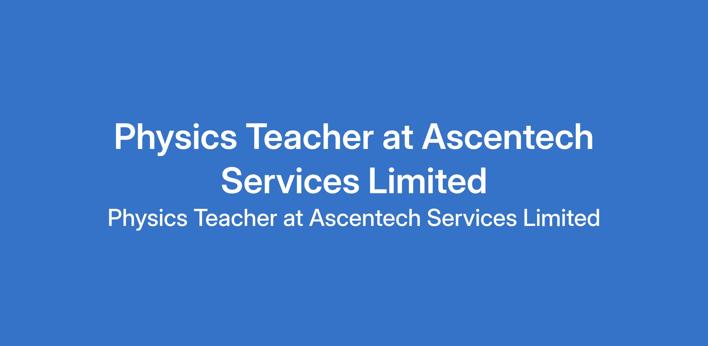 Ascentech Services Limited is recruiting to fill the position of: Physics Teacher. The position is located in Ibadan, Oyo State. Salary: N120,000 per month. Interested candidates should possess a minimum of B.Ed in Physics OR B.Sc in Physics / Physics Education with PGDE (or in view), TRCN registration and/or M.Ed / M.Sc qualification will be an added advantage, with 2+ years teaching experience at the secondary school level.