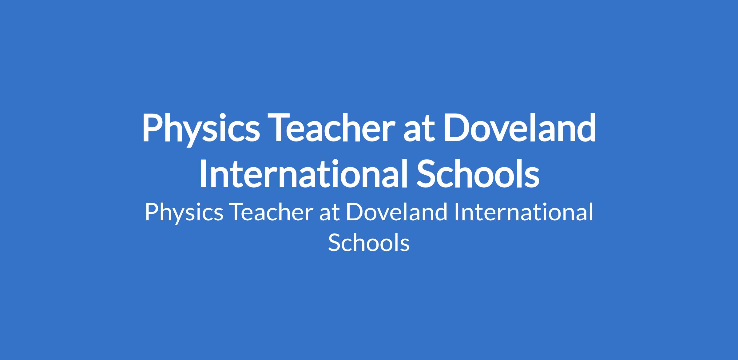 Physics Teacher at Doveland International Schools