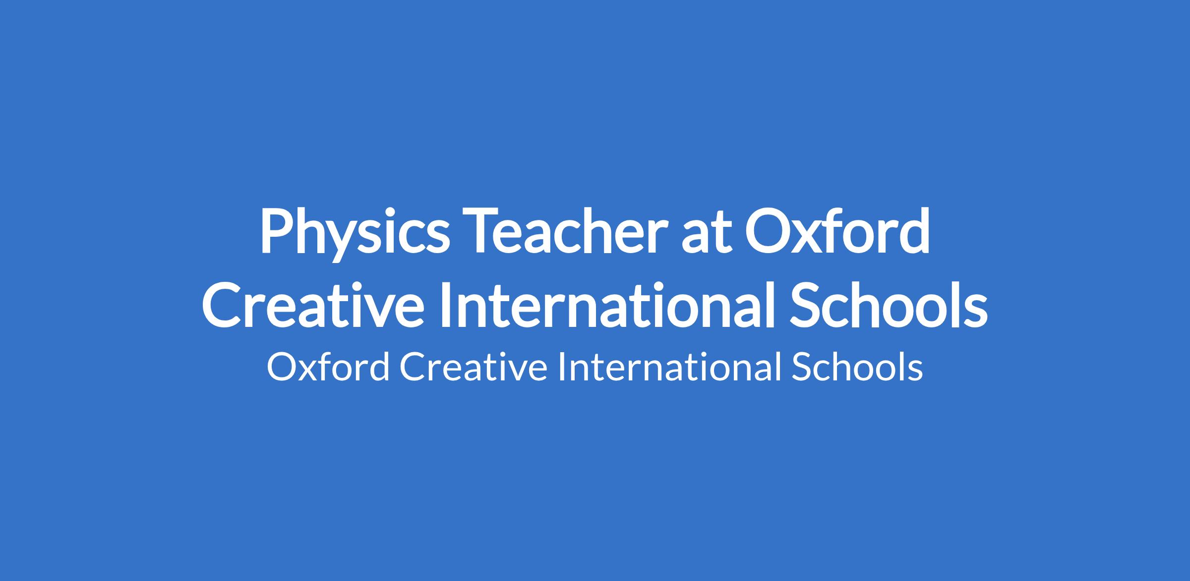 Physics Teacher at Oxford Creative International Schools