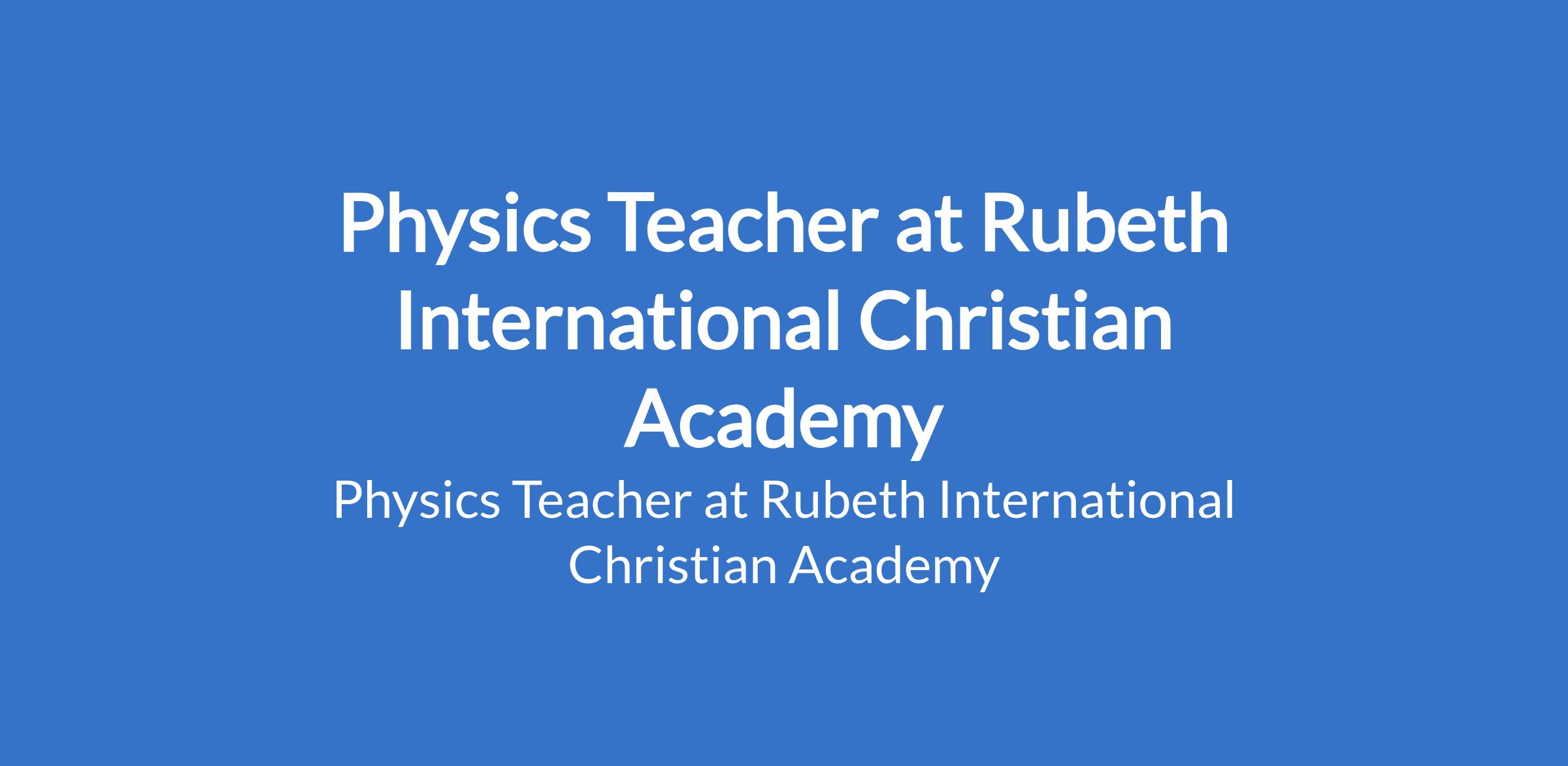 Rubeth International Christian Academy is recruiting to fill the position of: Physics Teacher. The position is located in Aba, Abia State. Interested candidates should be graduates (B.Ed. or any other Degree; PGDE is an added advantage), and must be resident in Aba, Abia State.