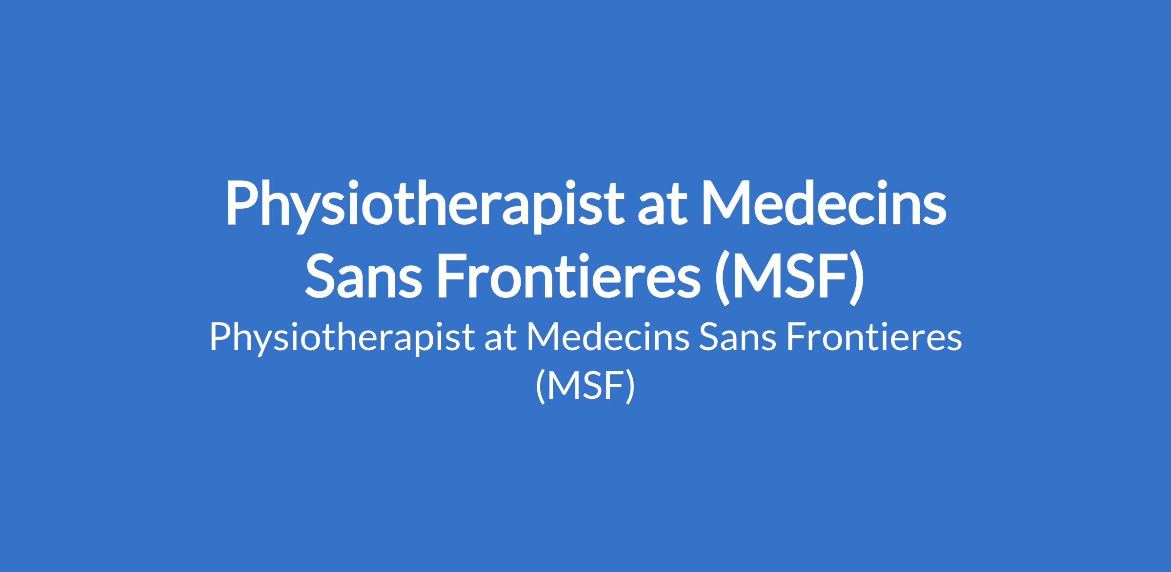 Physiotherapist at Medecins Sans Frontieres (MSF)