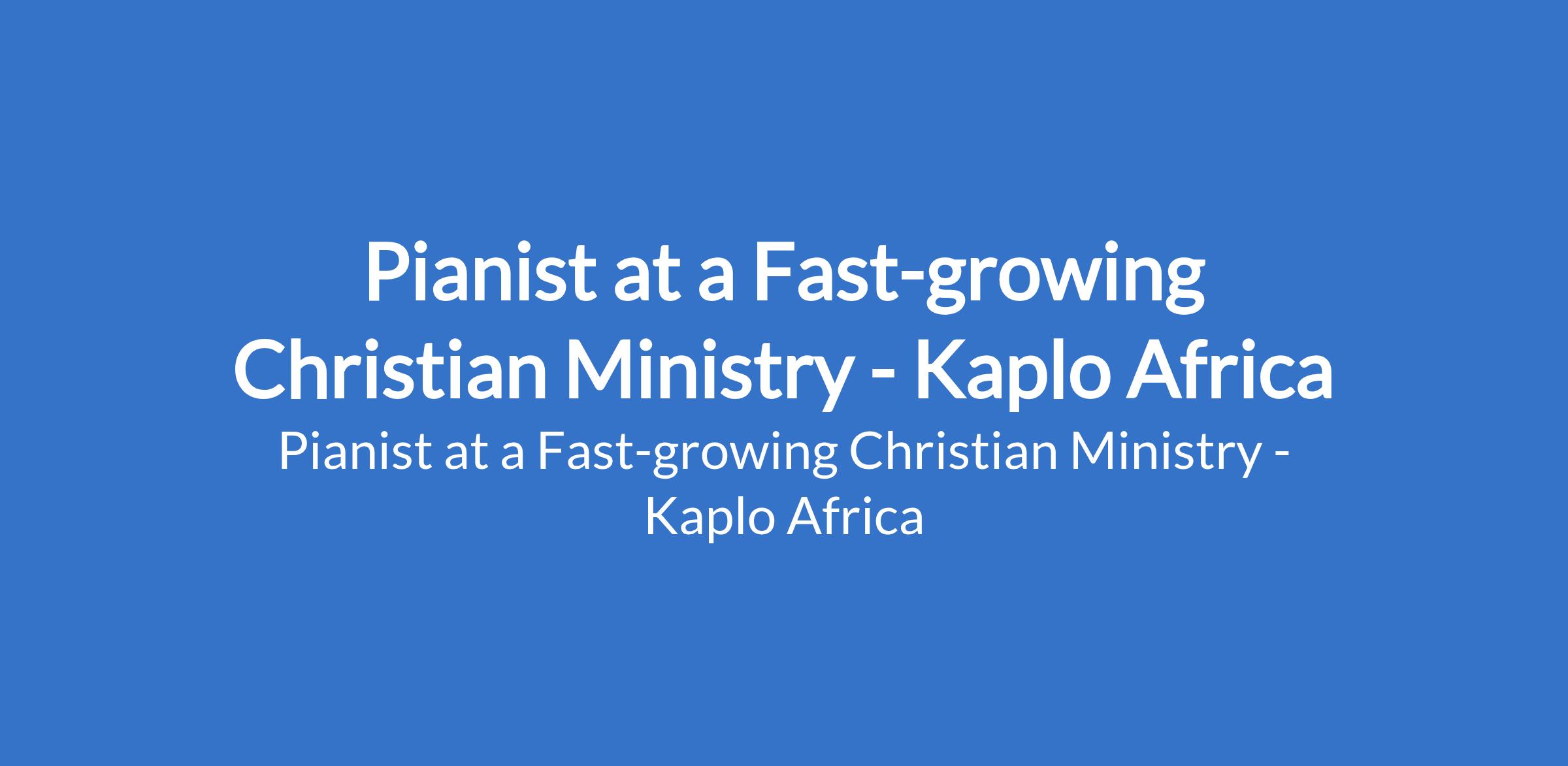 Pianist at a Fast-growing Christian Ministry - Kaplo Africa