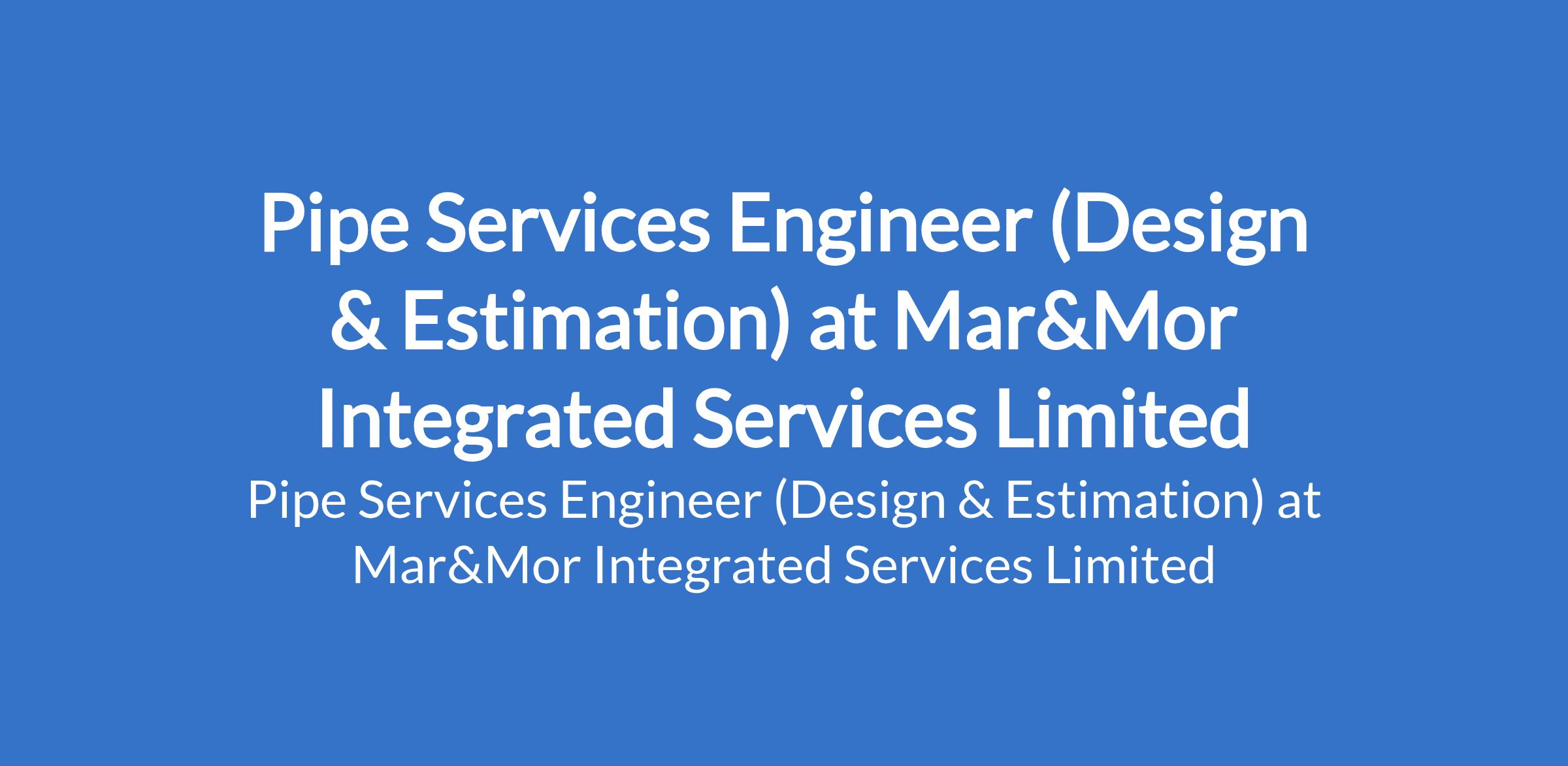 Mar&Mor Integrated Services Limited is recruiting to fill the position of: Pipe Services Engineer (Design & Estimation). The position is located in Lagos State. Interested candidates should possess a B.Sc, BTech, or HND (or equivalent) in Mechanical Engineering or a related field with a minimum of 5 years post-NYSC experience in Plumbing and Fire Protection design, tender pricing, and estimation.