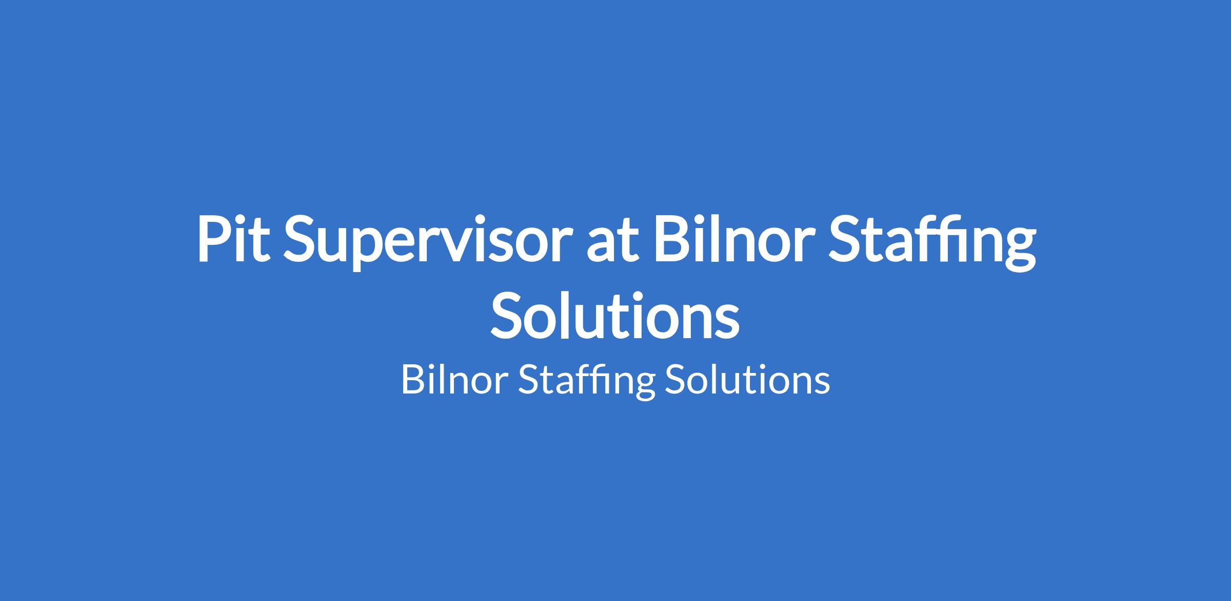 Bilnor Staffing Solutions' client is looking for PIT SUPERVISOR for their operations in Rustenburg, NWP.