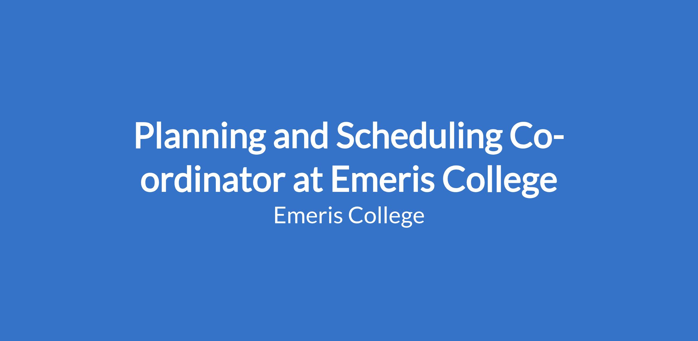 Emeris, Sandton Campus has a vacancy for a Planning and Scheduling Co-ordinator.