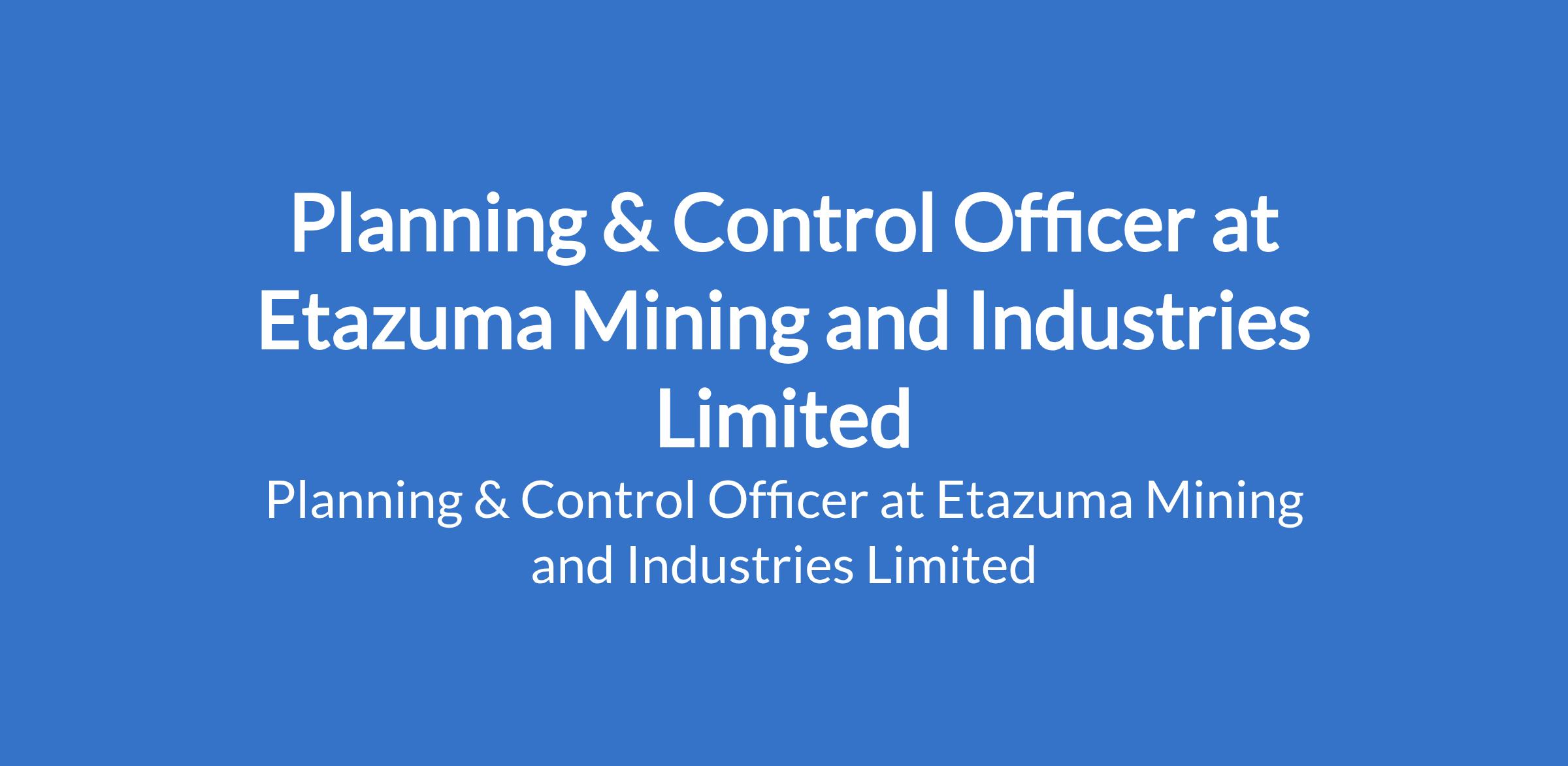 Etazuma Mining and Industries Limited is recruiting to fill the position of: Planning & Control Officer. The position is located in Kogi State. Interested candidates should possess a Bachelors Degree in Mining Engineering, Geology, or a related technical field with 57+ years of experience in mine planning or operations, preferably in open-pit or underground mining environments.