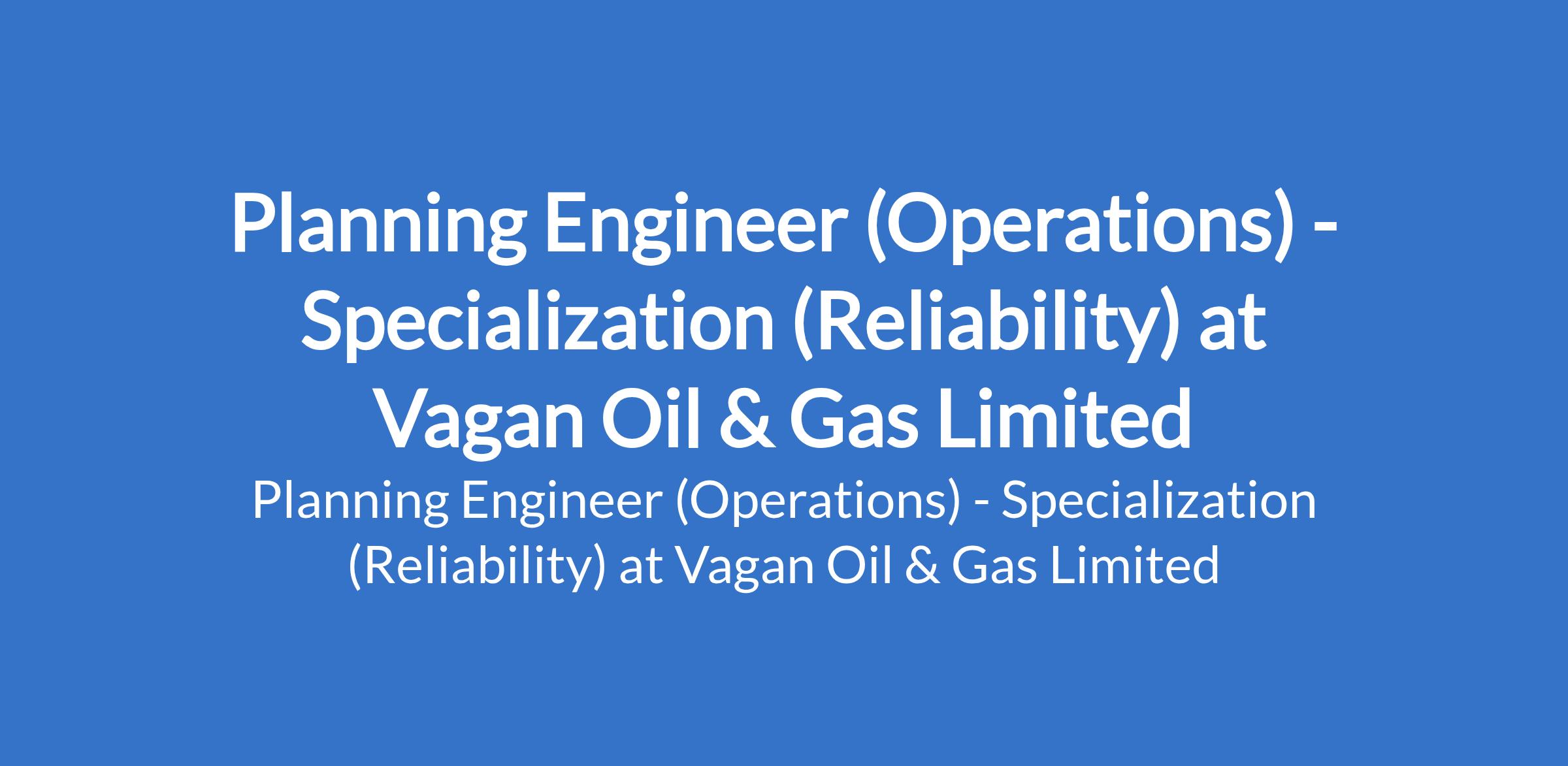 Vagan Oil & Gas Limited is recruiting to fill the position of: Planning Engineer (Operations) - Specialization (Reliability). The position is located in Port Harcourt, Rivers State. Interested candidates should possess a University Degree or Higher National Diploma (HND) in any physical or pure sciences discipline (e.g., Computer Science, Engineering, Physics etc.); Masters Degree will be considered as added advantage with a minimum of 5 years in a core engineering discipline and 2 years of proven work experience in failure modes and effect analysis, failure investigations using RCAs, 5Ys and Causal learning investigation, Proactive Technical Monitoring, and continuous improvement.