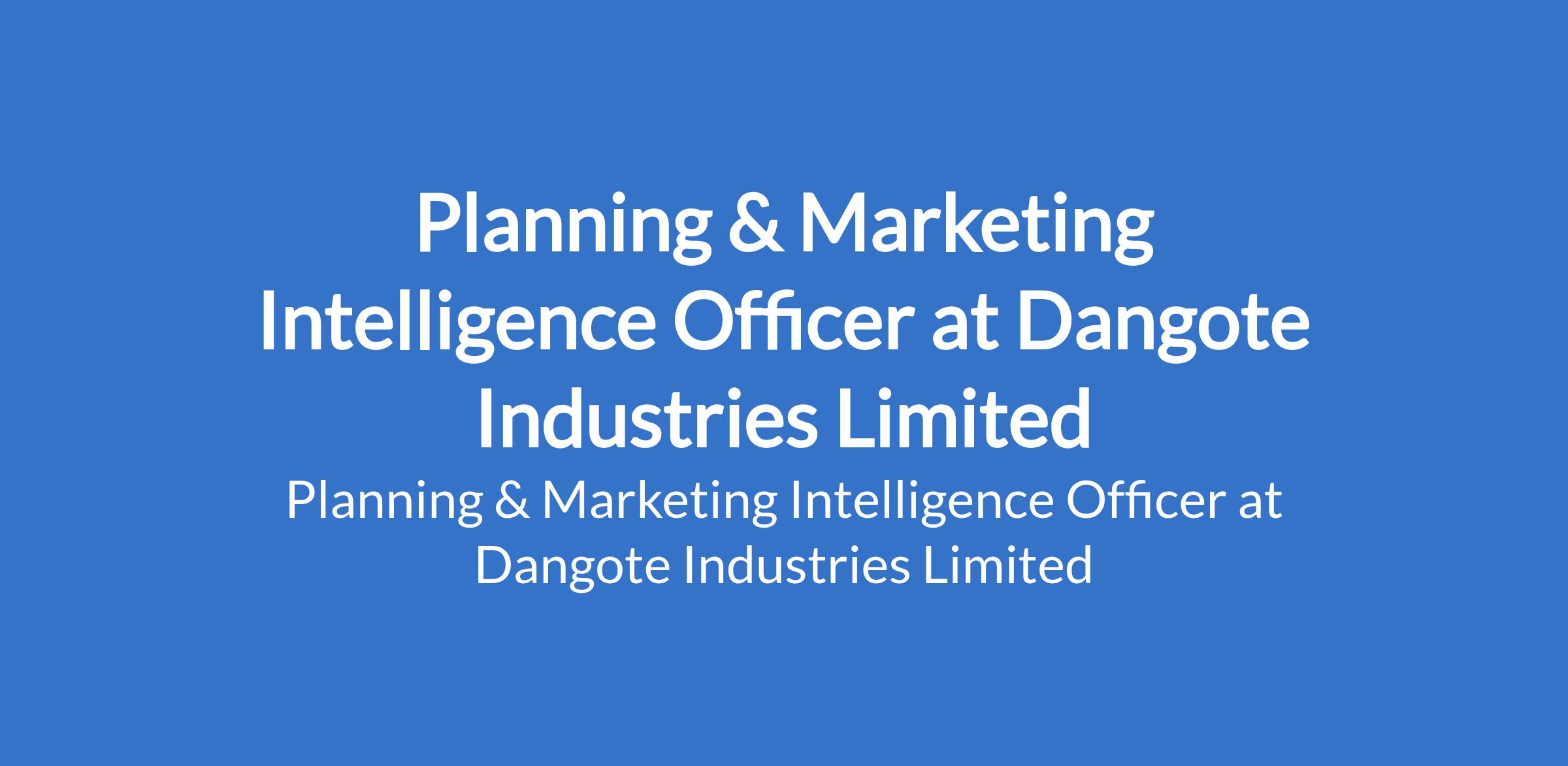 Dangote Industries Limited is recruiting to fill the position of: Planning & Marketing Intelligence Officer. The position is located in Lagos State. Interested candidates should possess a Bachelors / Master`s Degree in Economics, Business Administration, or related fields with a minimum of 3 years proven experience in Market Intelligence, Strategic Planning, or a similar role within the Petroleum or Energy Industry.