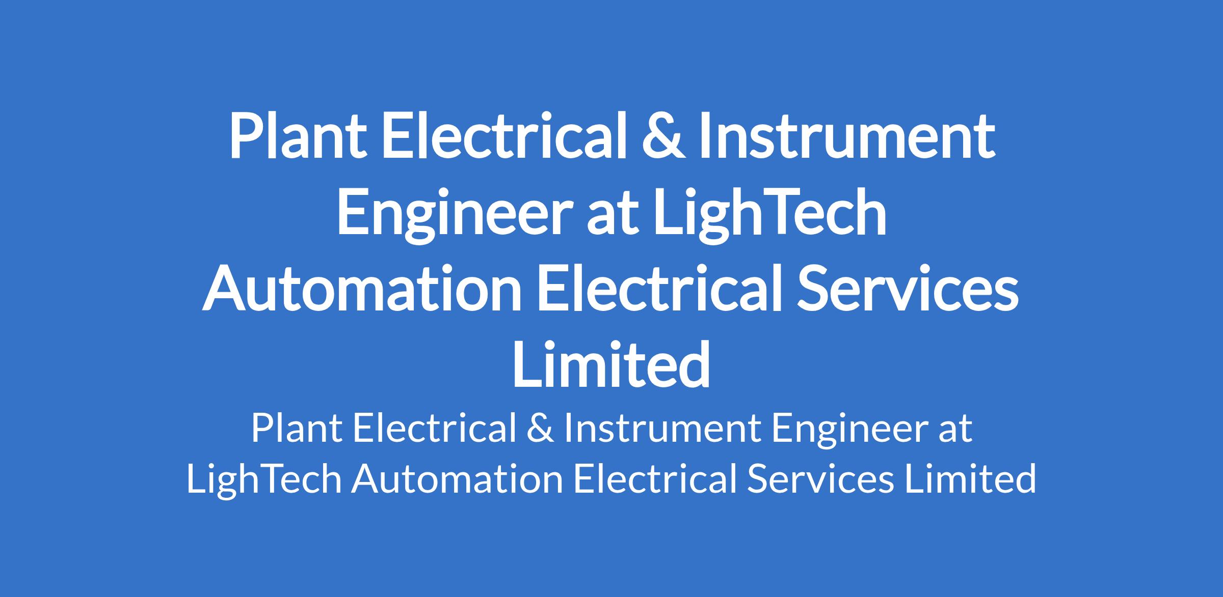 LighTech Automation Electrical Services Limited is recruiting to fill the position of: Plant Electrical & Instrument Engineer. The position is located in Lekki Free Trade Zone, Ibeju Lekki - Lagos State. Salary: N300,000 - N400,000 / month. Interested candidates should possess a Bachelors Degree or HND in Electrical, Electronics, or Instrumentation Engineering with a minimum of 3 years experience in a manufacturing or process-plant environment and must be willing to relocate to Ibeju-Lekki.
