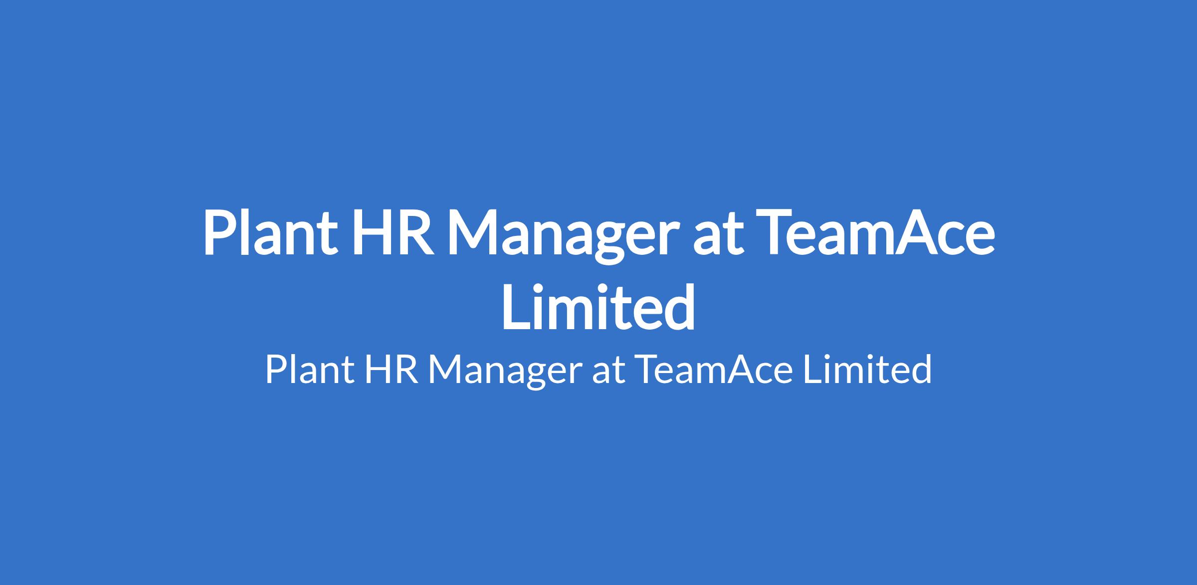 TeamAce Limited - Our client, a reputable organization in the Manufacturing, Plant & Mining sector is recruiting to fill the position of: Plant HR Manager. The position is located in Gujeni, Abuja (FCT). Salary: N2,000,000 - N3,000,000 per month. Interested candidates should possess a Bachelors Degree in Human Resources, Business Administration, or related fields with a minimum of 7 years of HR experience, with strong exposure to manufacturing, plant, or mining environments.