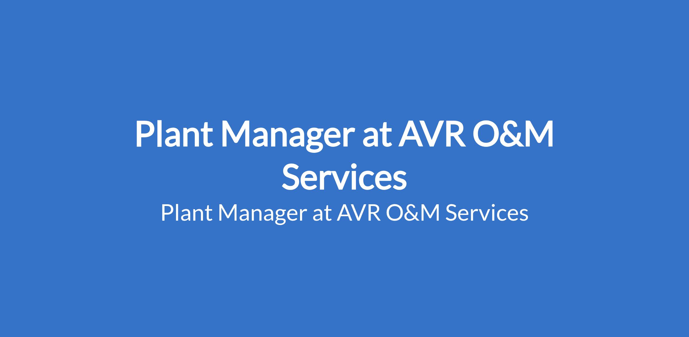 Plant Manager at AVR O&M Services